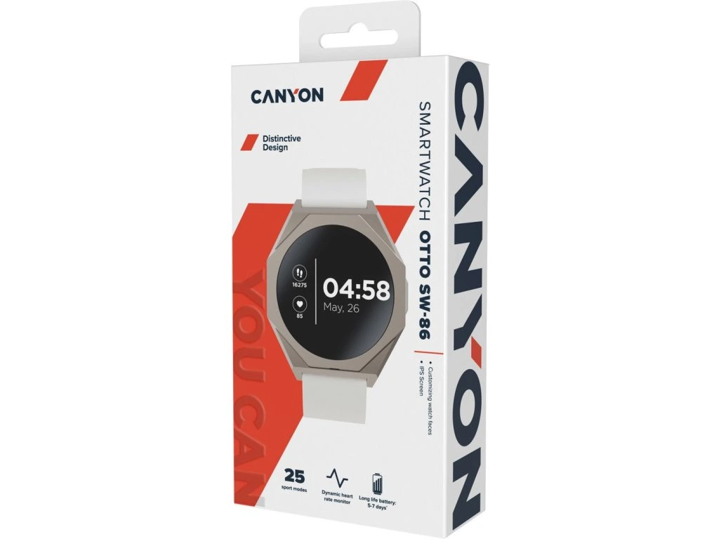 Inteligentné hodinky Otto SW-86 Otto sú inteligentné hodinky vytvorené italským dizajnérom. Jeho jedinečný tvar v osemuholníkovom rámčeku dokáže dokonale podčiarknuť vašu dynamickú individualitu a štýl. Hodinky vám budú ukazovať nielen čas, ale aj počasie a upozornenia na hovory a správy - stačí ich synchronizovať so smartfónom. K dispozícii je 25 športových režimov vrátane plávania: tieto hodinky sú vodotesné podľa normy IP68. Dokážem monitorovať srdečný tep, krevní tlak, spánok, počítať kroky a pripomínať vám, že sa máte napiť. Hudobný prehrávač a fotoaparát môžete ovládať priamo zo zápästia. Vyberte si zo šesť ciferníkov hodiniek alebo si stiahnite nové - zariadenie je plne prispôsobené. A nemusíte ho nabíjať denne, pretože Otto vydrží v aktívnom režime až 7 dní! S týmito inteligentnými hodinkami sa môžete sústrediť len na dôležité veci. Upozorňujeme, že nám záleží na vašom súkromí - inteligentné hodinky Canyon sú v súlade s nariadením GDPR a chránia vaše osobné údaje. UNIKÁTNY DESIGN Štýlový dizajn inteligentných hodiniek Otto, vyvinutý špeciálne pre tento model, dokonale zvýrazní vašu individualitu a osobný štýl. ZOSTAŇTE V STYLE Využijte 25 športových režimov vrátane plávania - tieto hodinky sú vodotesné podľa normy IP68. Navyše majú zabudovaný krokomer, meranie spálených kalórií a sledovanie vzdialenosti. UDRŽUJTE SVOJE ZDRAVIE NA UZDE Sledujte svoj spánok, krevní tlak a nasýtenie kyslíkom. Hodinky majú aj pripomienkovač fyzickej aktivity. SKUTOČNE VODOTESNÉ Hodinky sú úplne vodotesné a vhodné na plávanie a kúpanie. BEZRÁMČEKOVÝ DISPLEJ S ROZLÍŠENÍM 360X360 PX Úžasná reprodukcia farieb a rozlíšenie obrazu. VYLEPŠENÝ POUŽÍVATEĽSKÝ ZÁŽITOK Prispôsobiteľný ciferník, pôsobivá výdrž batérie 5 až 7 dní, diaľkové ovládanie fotoaparátu a prehrávanie médií. Možnosť výberu z 25 jazykov. PRISPÔSOBENIE HODINIEK Vytvorte si vlastný ciferník hodiniek alebo si ho vyberte v aplikácii. ZOSTAŇTE V KONTAKTE Zobrazte si predpoveď počasia, prijímajte push oznámenia z aplikácií a upozornenia na hovory a textové správy priamo na displeji inteligentných hodiniek. KĽÚČOVÉ FUNKCIE Odolnosť voči vode IP68 Bezrámčekový displej IPS Prispôsobiteľné oznámenia Oznámenia SMS Pripomienka pitia Pripomienka dlhého sedenia Monitor srdcového tepu a akcelerometer Krevný tlak Úroveň nasýtenia kyslíkom Podrobné štatistiky aktivity Menštruačný kalendár Monitor spánku športových režimov Diaľkové ovládanie fotoaparátu a prehrávača Zabudované hry Počasie Nízka spotreba energie Kompatibilný so systémom Android 7.0+ (smartfóny s BT 4.0+ a podporou Google Play, Android GO bez notifikácií), iOS 13.0+ Technické parametre Čipová súprava: Realtek 8762DK Pam; ROM 64 MB Plnohodnotné dotykové ovládanie. Kapacita batérie: 280 mAh Typ batérie: Li-ion polymér Zpôsob nabíjania: Magnetický Nabíjací kábel: USB-A Integrácia: Google Fit, Apple Health 7 dní Pohotovostný čas: 1 min: Až 45 dní Stupeň ochrany: IP68 Bluetooth: BLE 5.1Dodatočné parametre