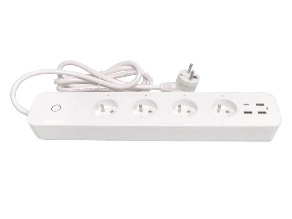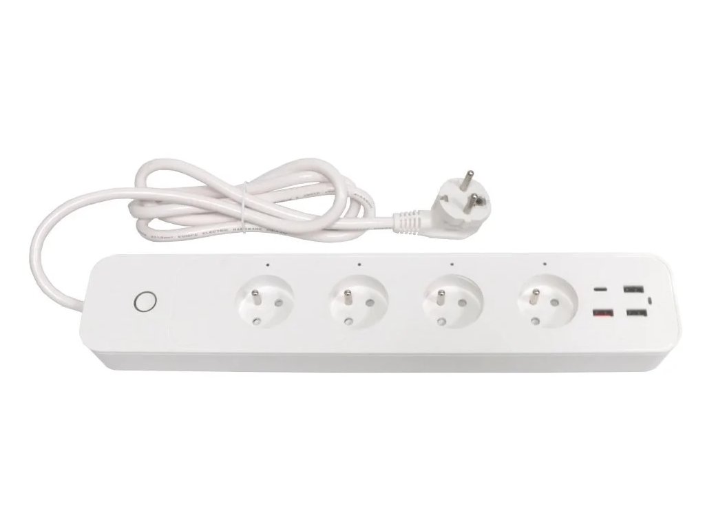 IMMAX NEO LITE SMART 07771L Kompaktný predlžovací prívod so štyrmi zásuvkami, tromi portami USB 2.0 a jedným portom USB-C s podporou bezdrôtového Wi-Fi rozhrania a hlasového ovládania Amazon Alexa a Apple Siri. Možno s ním teda pripojiť nielen elektrické spotrebiče, ale súčasne nabíjať až štyri mobilné zariadenia do max. celkového nabíjacieho prúdu 5,4 A. Samozrejmosťou je aj ochrana proti preťaženiu a skratu. ZÁKLADNÁ ŠPECIFIKÁCIA Vstupné napätie: AC 230 V / 16 A, max. 3680 W Počet zásuviek: 4× zásuvka typ E (FR), 3× USB 2.0, 1× USB-C Wi-Fi rozhranie: 2,4 GHz, 802.11 b/g Str. kábla: 1,5 m Rozmery: 360 × 59,5 × 47 mm Farba: biela TuyaSmart: Aplikácia pre Android Aplikácia pre iOSDodatočné parametre