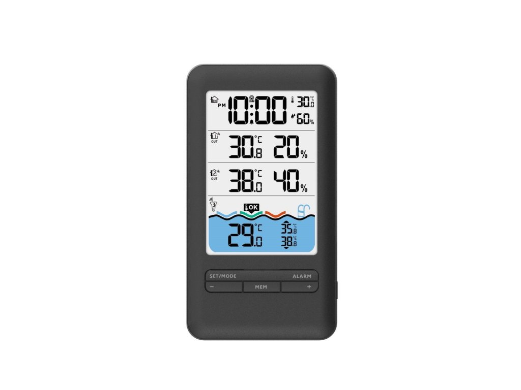 Immax NEO LITE Inteligentný snímač teploty bazéna + 2x vnútorný snímač teploty a vlhkosti na platforme Tuya je moderné zariadenie určené na monitorovanie teploty vody v reálnom čase. Vďaka pripojeniu cez WiFi (2,4 GHz) sa ľahko integruje do inteligentnej domácnosti a umožňuje vzdialený prístup k nameraným údajom prostredníctvom mobilnej aplikácie. Snímač spolupracuje s ďalšími zariadeniami v ekosystéme Tuya, čím zabezpečuje jednoduché prepojenie a automatizáciu. Výhody: - Možnosť nastavenia upozornení, napríklad pri dosiahnutí určitej teploty, alebo automatizácie, pri ktorej môže snímač spolupracovať s ohrievačom bazéna. - Systém Tuya umožňuje jednoduchú integráciu s inými zariadeniami, ako sú inteligentné termostaty, osvetlenie alebo zabezpečenie. - Aplikácia je používateľsky prívetivá, dostupná v slovenčine a ponúka širokú škálu nastavení a možností monitorovania. - Bazénové a interiérové senzory na meranie teploty a vlhkosti, alarm alebo zobrazenie dátumu a času rozširujú ich využiteľnosť. Technické špecifikácie: Pripojenie vnútornej jednotky cez Wi-Fi. Frekvencia: 2400 MHz ~ 2483,5 MHz Maximálny RF výstupný výkon: Wi-Fi: 20dBm Pripojenie k snímačom: 433 MHz Stupeň ochrany vnútornej stanice: IP20 Stupeň ochrany vnútorného snímača: IP20 Stupeň ochrany senzora v bazéne: IP67 Rozsah detekcie vnútornej teploty: -9 - +50 °C Rozsah detekcie vonkajšej teploty: -40 - +60°C Rozsah detekcie vlhkosti: 20 - 95% Napájanie stanice: 5V/1A (adaptér je súčasťou dodávky) USB C, 1x vstavaná dobíjacia batéria 1200 mAh Napájanie snímača: 2xAA 1,5V batérie (nie sú súčasťou dodávky) Napájanie senzora bazéna: 2xAAA 1,5V batérie (nie sú súčasťou dodávky) Rozmery stanice: 156x25x85 mm Veľkosť senzora bazéna: 152,3x80x94mm Veľkosť vnútorného senzora: 97x50x32mm Obsah balenia: vnútorná stanica, 1x bazénový senzor, 2x vnútorný senzor, napájací kábel, návod na použitie.Dodatočné parametre
