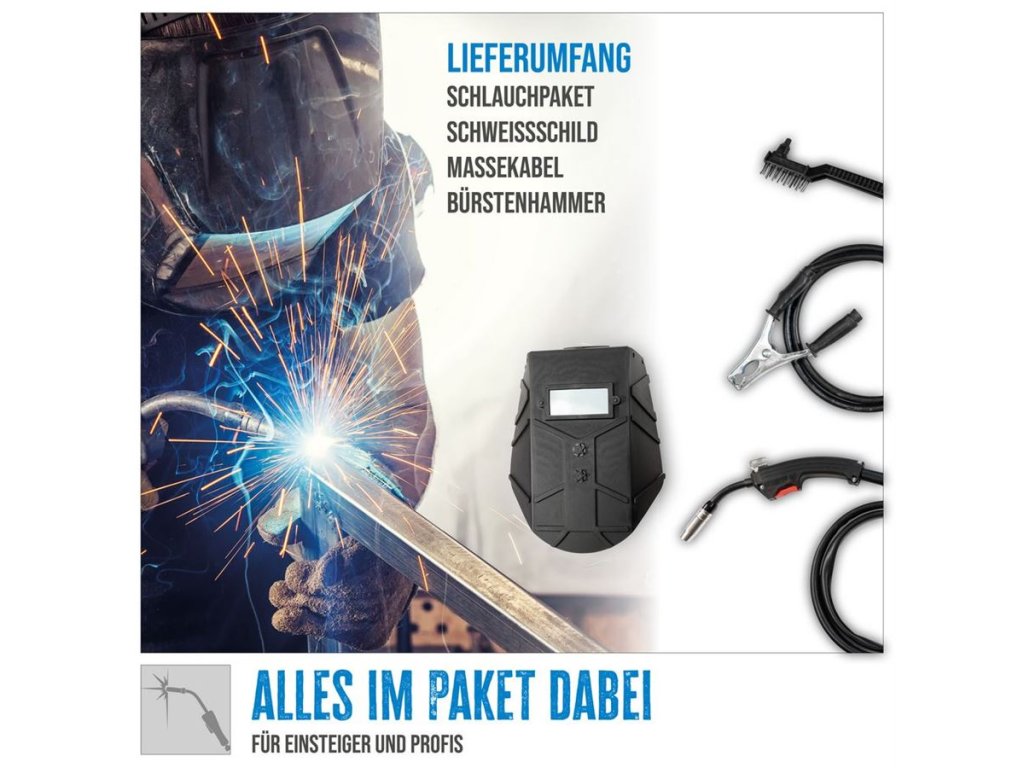 Funkcia A-SYNERGIC, automatické nastavenie zváracieho prúdu, napätia a rýchlosti posuvu drôtu podľa hrúbky materiálu - zváračka, použiteľná s rúrkovými drôtmi rôznych priemerov od 0,6 do 1,0 mm. Mikroprocesorová riadiaca jednotka - výkonové spínacie tranzistory IGBT - nízka hmotnosť, ktorá uľahčuje manipuláciu so zváračkou nielen v (domácich) dielňach, ale najmä pri opravách a montáži vonku. Konštrukcia: plášť z oceľového plechu, 2 m zvárací horák, kábel so zemniacou svorkou, tepelná ochrana základnej dosky, ventilátor, rukoväť na pohodlné prenášanie. Vybavenie: sada dýz (4), podávacie kladky (2), drôtená kefa s kladivom na trosku, štít. Celkové rozmery (d x š x v): 375 x 295 x 280 mm, max. hmotnosť (rúrkovej) cievky drôtu: 1 kg. Spĺňa požiadavky nariadenia Komisie EÚ 2019/1784, stanovené pre ekodizajn elektrických zváracích zariadení. FCAW - zváranie ocele v ochrannej atmosfére inertného plynu, ktorý sa uvoľňuje tavením vnútornej výplne rúrkového drôtu. Parametre: Pripojenie 230 V ~ 50 Hz Maximálny príkon 4,09 kVA Ochrana 16 A Prúdový rozsah 20 - 120 A Odporúčaná hrúbka materiálu 1,5 - 8 mm Úroveň účinnosti 85 % Trieda izolácie H Typ ochrany IP 21 SDodatočné parametre