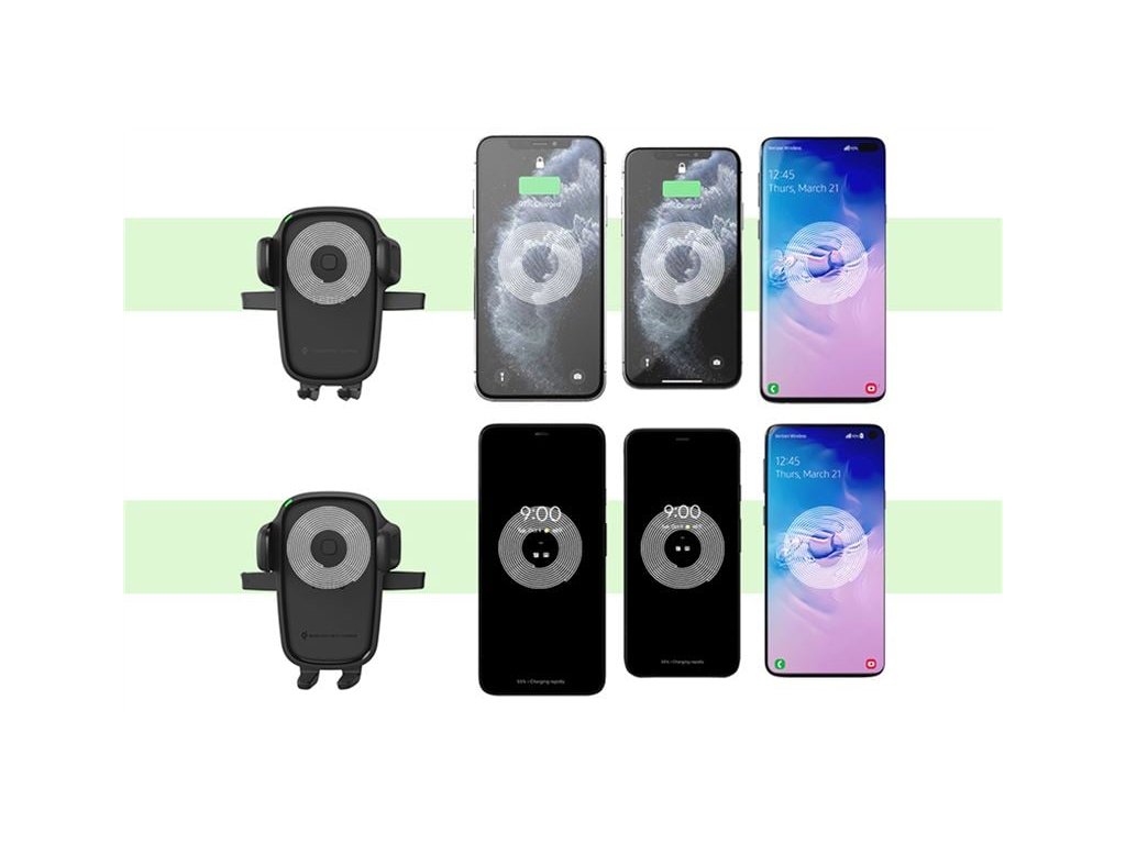 - držiak umožňuje bezdrôtové nabíjanie zariadení pomocou bezdrôtovej technológie Qi Wireless