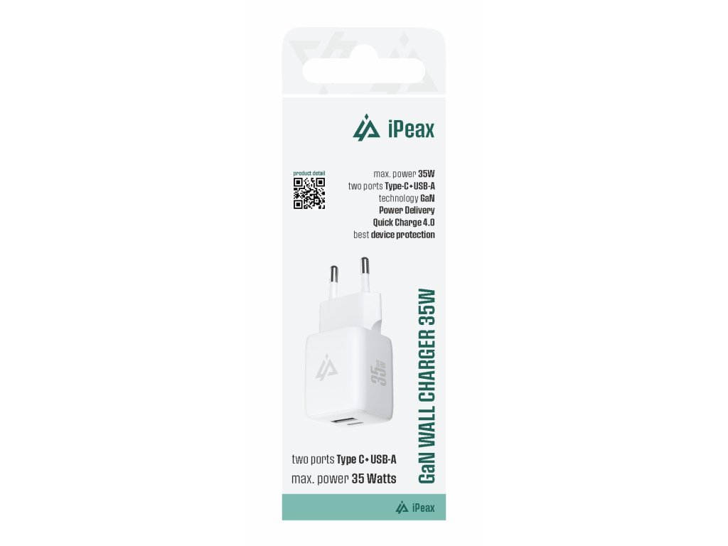 iPEAX GaN SÍŤOVÁ NABÍJEČKA 35W (USB-C + USB-A) BÍLÁ