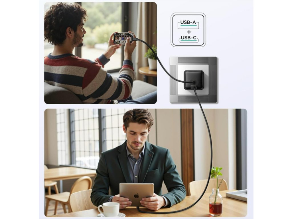 iPEAX GaN SÍŤOVÁ NABÍJEČKA 35W (USB-C + USB-A) ČERNÁ Kompaktní a efektivní nabíječka nové generace Síťová nabíječka iPEAX s výkonem 35 W využívá pokročilou GaN technologii, která umožňuje dosáhnout vysokého výkonu při minimálních rozměrech. Nabízí jak USB-C s podporou Power Delivery a PPS, tak i USB-A s rychlým nabíjením QC 4.0, což z ní dělá ideální volbu pro většinu moderních zařízení. Rychlé a univerzální nabíjení pro všechna zařízení USB-C port zvládne až 35 W a podporuje i dynamické nabíjení přes PPS, zatímco USB-A poskytuje až 27 W díky Quick Charge 4.0. Při použití obou portů zároveň se výkon inteligentně rozděluje (sdílených 15 W). Nabíječka je vhodná pro chytré telefony, tablety, bezdrátová sluchátka i powerbanky. Klíčové vlastnosti: GaN technologie pro vyšší výkon a menší velikost Výstup USB-C až 35 W (PD + PPS), USB-A až 27 W (QC 4.0) Celkový sdílený výkon při dvojím nabíjení 15 W Kompaktní tělo: pouze 32,3 × 32,3 × 38,3 mm Podpora širokého vstupního napětí (100–240V AC) Specifikace: Vstup: 100–240V AC, 1.0A, 50/60Hz Výstupy: USB-C: 5V DC 3A, 9.0V DC 3A, 12V DC 2.92A, 15V DC 2.33A, 20V DC 1.75A / max. 35W PPS1: 3.3–11V DC 3.0A / max. 33W PPS2: 3.3–16V DC 2.0A / max. 32W USB-A QC 4.0: 5V DC 3A, 9V DC 3A, 12V DC 2.25A, 20V DC 1.35A / max. 27W USB-C + USB-A: sdílených 15W Rozměry: 32,3 × 32,3 × 38,3 mmDodatočné parametre