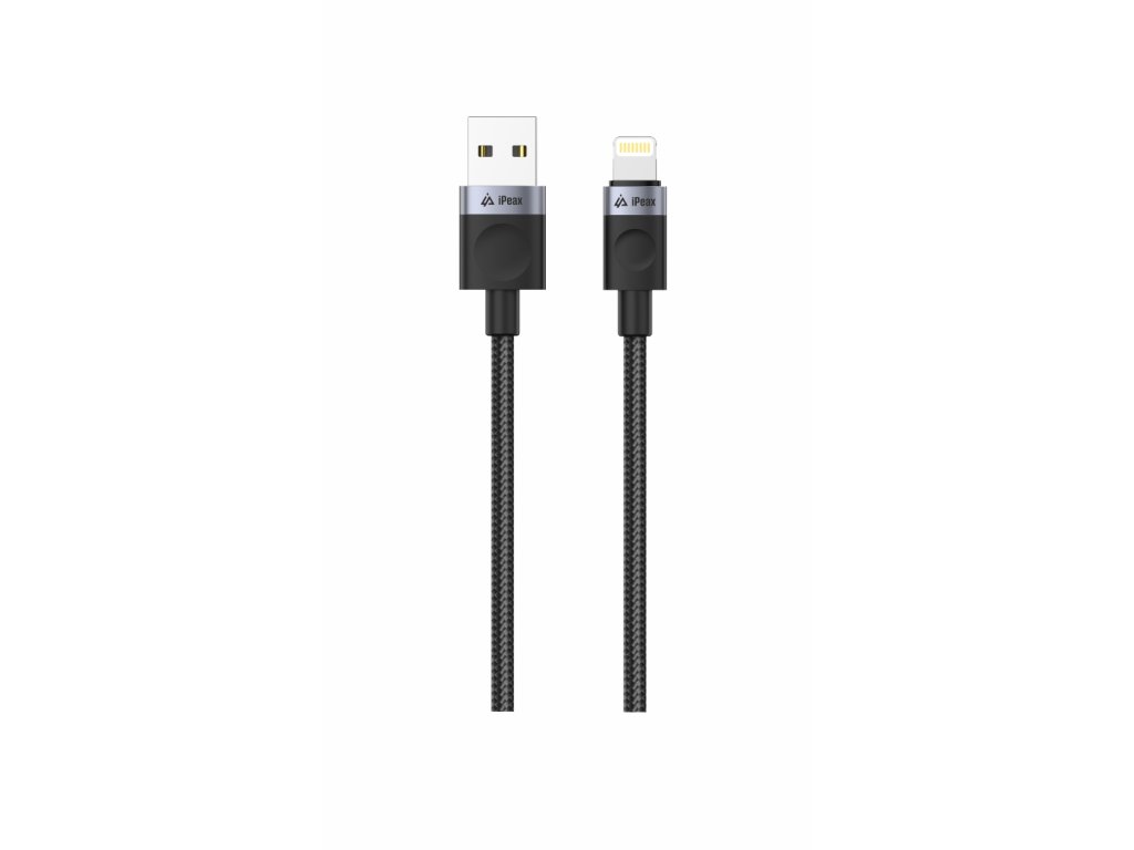 iPEAX TEXTILNÍ KABEL USB-A / LIGHTNING 1,5M, USB 2.0 ČERNÝ