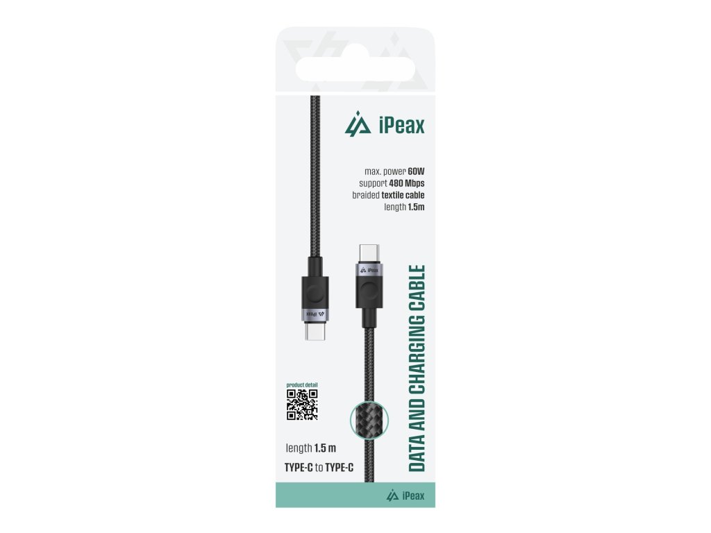 iPEAX TEXTILNÍ KABEL USB-C / USB-C 1,5M, USB 2.0 ČERNÝ