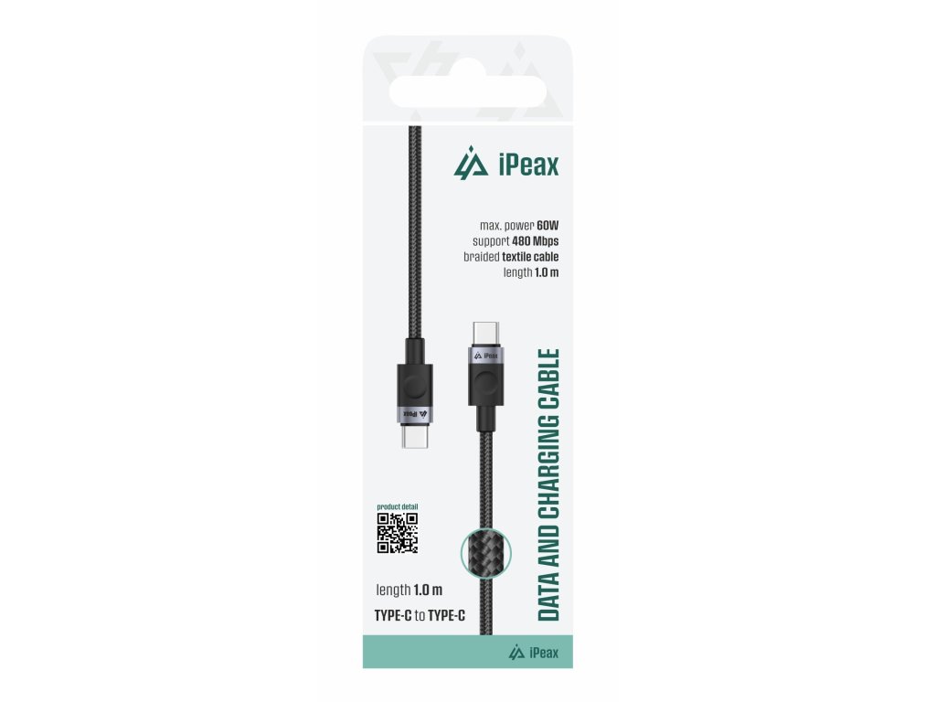 iPEAX TEXTILNÍ KABEL USB-C / USB-C 1M, USB 2.0 ČERNÝ