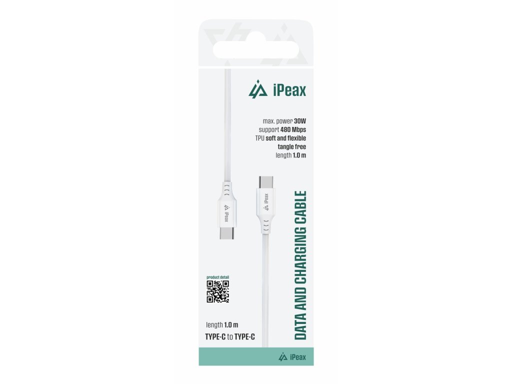 iPEAX USB-C / USB-C kabel Praktický a odolný kabel pro každodenní použití Cenově dostupný kabel iPEAX s délkou 1 m je ideální volbou pro nabíjení i přenos dat mezi moderními zařízeními s USB-C konektorem. Díky USB 2.0 standardu a proudovému výkonu až 3 A (60 W) bez problému obslouží smartphony, tablety, powerbanky i další příslušenství. Odolné provedení z TPU Zapomeňte na praskající nebo tvrdé plastové obaly – použitý flexibilní TPU materiál je příjemný na dotek, odolný vůči zalomení a zároveň se nezamotává. Bílá varianta působí čistě a elegantně, a hodí se do jakéhokoliv prostředí. Klíčové vlastnosti: USB-C / USB-C kabel o délce 1 metru. Podpora USB 2.0 pro přenos dat až 480 Mb/s. Nabíjecí výkon až 3 A / 60 W. Flexibilní a odolný TPU materiál. Ideální pro každodenní nabíjení a synchronizaci moderních zařízení.Dodatočné parametre