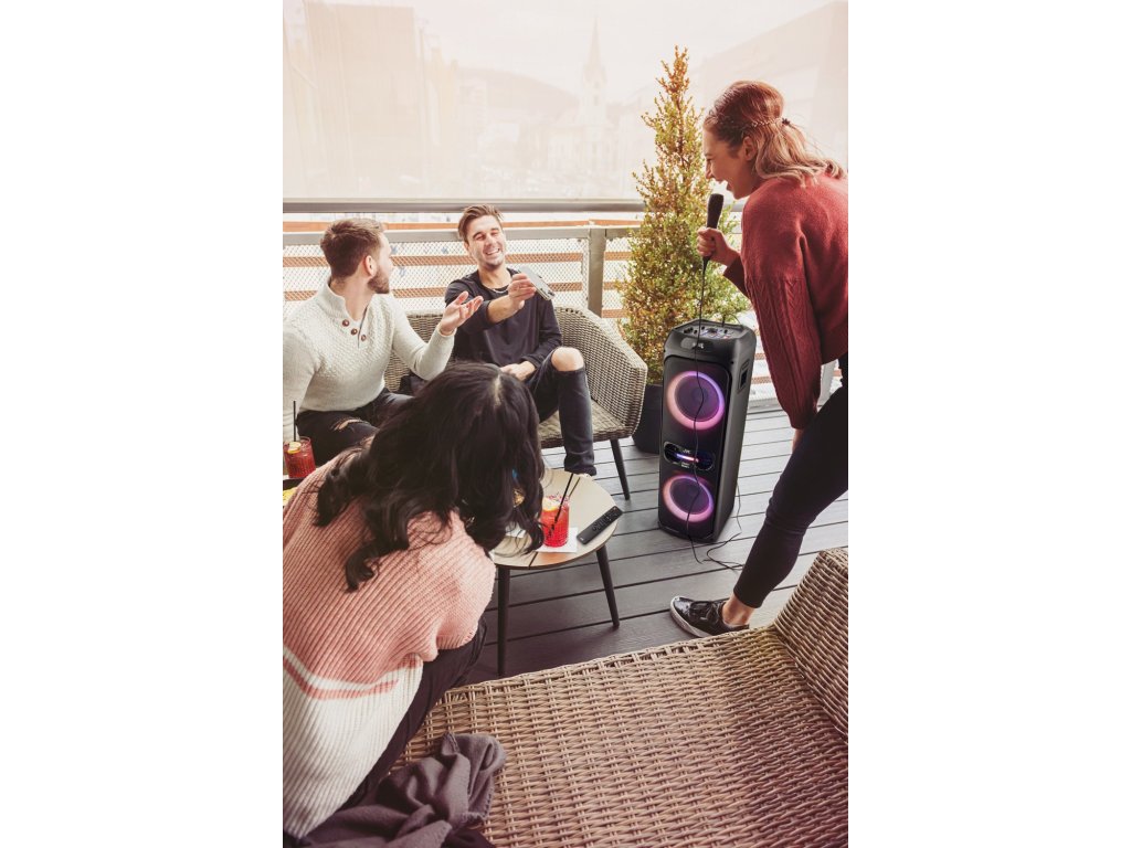 Funkcie Bezdrôtové streamovanie cez Bluetooth FM tuner (30 predvolieb) Svetelné efekty LED Vstup USB - možnosť nahrávať mix hudby a vokálov Prehrávanie súborov MP3 Karaoke - potlačenie vokálov v prehrávanej skladbe TWS - True - Wireless Stereo Špecifikácie Bluetooth V5.0 Frekvencia FM: 87,5 - 108 MHz USB max. 32 GB (FAT32) Vstup AUX IN Vstup pre mikrofón/ gitaru Frekvenčný rozsah 40 Hz - 20 kHz Výstupný výkon 230 W (RMS) Obsah balenia Reproduktor Napájací kábel Mikrofón Používateľská príručka Diaľkové ovládanie Technické parametre: Šírka 28,0 cm Výkon 230 W Šírka 34,1 cm Výška 99,8 cm Výška 87,5 cm Farba čierna Hĺbka 31,6 cm Hĺbka 38,1 cm Hmotnosť 15,20 kg Bez kapacity batérie Hmotnosť 12,50 kg FM rádio Bezdrôtové pripojenie Bluetooth Vstup AUX Áno Odolnosť bez zvýšenej odolnosti Príjem telefónnych hovorov Nie Frekvenčný rozsah od 40 Hz Špecifické funkcie TWS Podpora nabíjania mobilného telefónu Nie Frekvenčný rozsah do 20000 Hz Prehrávané zvukové formáty MP3 Mikrofón súčasťou balenia áno, káblový USB áno CD mechanika Nie Sieťové napájanie Označenie pripojenia BT XS-EP624B Rozmery (cm) 87 cmDodatočné parametre