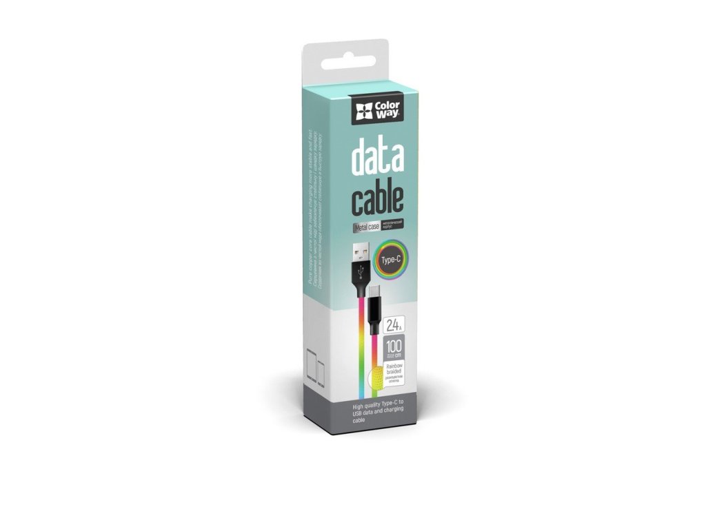 ColorWay USB 2.0 typ A na USB typ C, 1 m, Rainbow multicolor Kábel s kvalitným textilným opletením vhodný na pripojenie zariadenia s konektorom USB typ C k počítaču. Podporuje nabíjanie prúdom až 2,4 A. ZÁKLADNÁ ŠPECIFIKÁCIA Konektor 1: USB 2.0 typ A (M) Konektor 2: USB typ C (M) Dĺžka: 1 m Farba: viac fariebDodatočné parametre