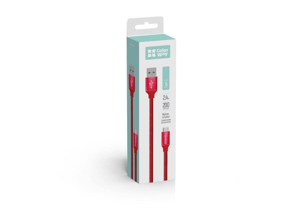 Kábel ColorWay USB-C 2 m 2,4 A, červený