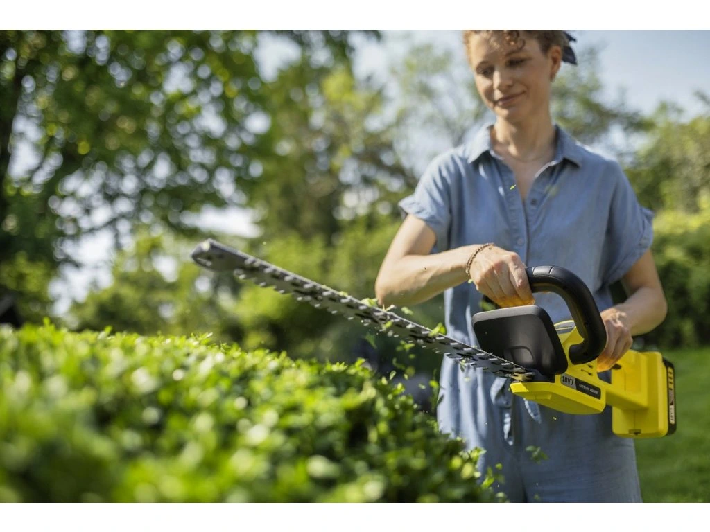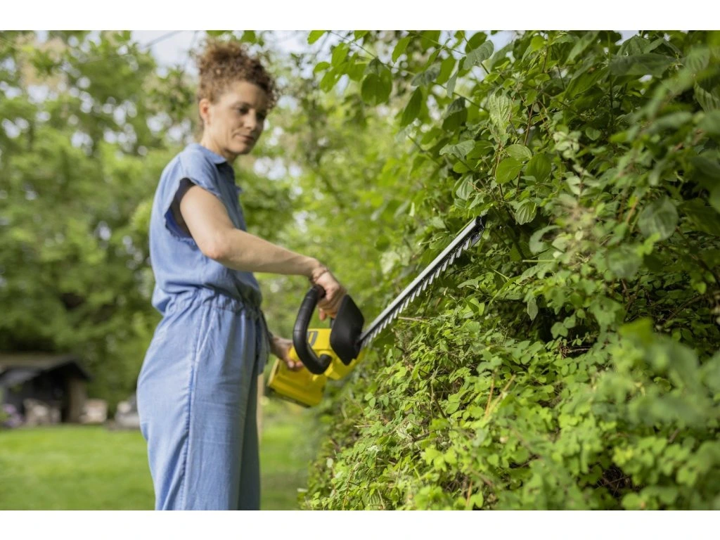 Mimoriadne ľahký: s hmotnosťou len 2,3 kg šetrí vaše ruky a chrbát a umožňuje pohodlnú prácu aj pri strihaní veľkých živých plotov.Laserom a diamantom brúsená čepeľ zabezpečuje čistý a presný strih, ktorý je šetrný k rastlinám.