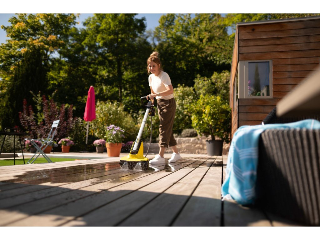 Optimalizovaná šírka a poloha valcových kief umožňuje čistenie až po okraje. Okrem toho na výmenu valčekových kief nie je potrebné žiadne náradie, takže okrem dreva a WPC možno dôkladne a bez námahy vyčistiť aj hladké kamenné dlaždice.