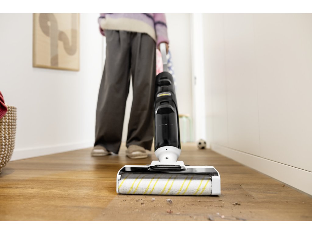 Akumulátorový tyčový vysávač s mopom FCV 4 je všestranné zariadenie 3 v 1, ktoré vysáva, mopuje a zanecháva suchý povrch - čistí tvrdé podlahy, koberce a rozliate tekutiny až o polovicu kratšie. Vyberte si zo štyroch režimov: automatický Dynamic!Control s detekciou nečistôt, inteligentný Stair!Assist na schody, suchý režim alebo výkonný Advanced!Power. Odstraňuje prach, chlpy domácich zvierat a odolné škvrny. Technológia Hygienic!Spin s rýchlosťou až 500 otáčok za minútu zabezpečuje dokonalé vytieranie a eliminuje až 99 % baktérií. Tichý, výkonný BLDC motor a 45-minútová batéria umožňujú upratovanie až 200 m2 na jedno nabitie. Zariadenie má 3,2" displej Vision!Clean, automatický štart/stop, samočistenie a umývateľný valec Pure!Roll - čistenie bez kontaktu so špinou je pohodlné a hygienické.Dodatočné parametre
