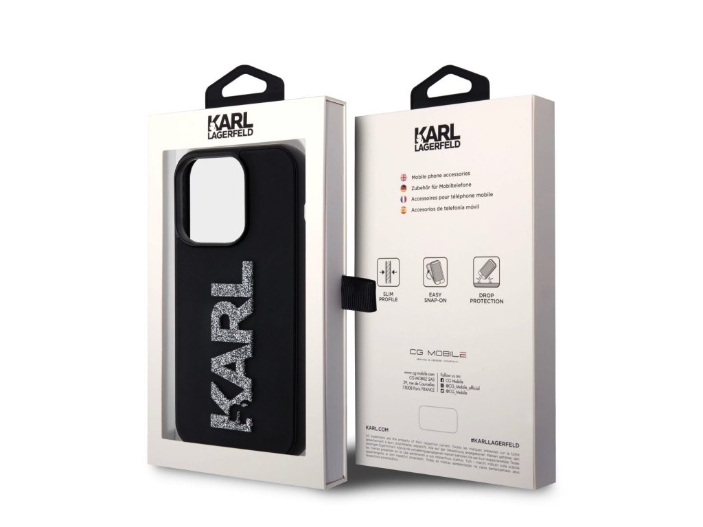 Karl Lagerfeld 3D Rubber Glitter Logo Karl Zadní Kryt pro iPhone 15 Pro Max Black
