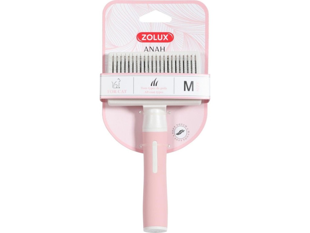 Rozčesávacia kefa so zasúvacími hrotmi pre mačky na všetky typy srsti. Rozčesáva, odstraňuje vypadané chlpy a vyhladzuje srsť. Vďaka svojim pružným a zahnutým hrotom sa používa na vyčesávanie spodnej vrstvy srsti. Táto kefa sa ľahko čistí a používa vďaka jej zasúvacím hrotom. Hroty z nerezovej ocele. Mäkká ergonomická a protišmyková rukoväť pre lepší komfort a optimálny úchop. Video k produktu tu Produktový leták k celému radu ANAH je uložený tu Rozmery: 50x92x175mmDodatočné parametre