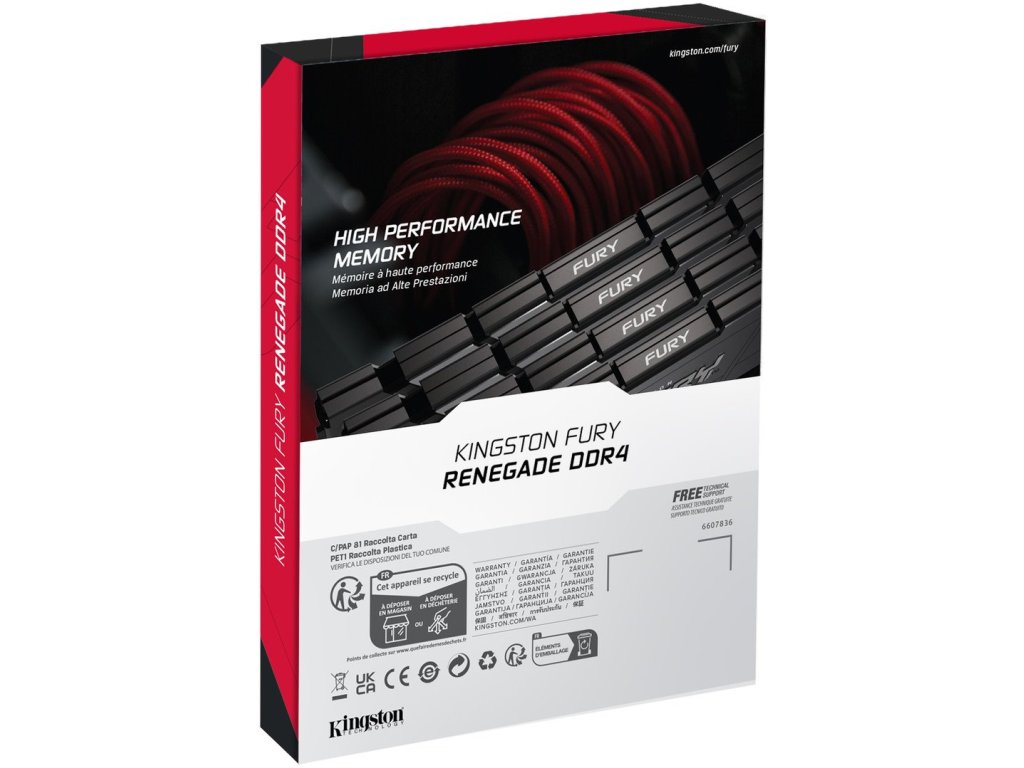Pamäť Kingston FURY™ Renegade DDR4 Pomôcť pamäte Kingston FURY™ Renegade DDR4 dáš svojmu počítaču s procesorom AMD alebo Intel výkonnosť, ktorú potrebuješ, aby si sa udržal na vrchole potravinového reťazca. Zrýchli snímkovaciu frekvenciu, zaisti plynulý streaming alebo úpravy videí vďaka rýchlosti až 5333MHz1 a rýchlemu časovaniu CL12 – CL20. Agresívny a štýlový chladič v čiernej farbe a zodpovedajúca čierna doska plošných spojov ti umožní vyhnúť sa horúčave a zakúriť tvojim nepriateľom. Pamäť je k dispozícii v jednotlivých moduloch s kapacitou 8 – 32 GB av sadách po dvoch, štyroch a ôsmich s kapacitou 16 – 256 GB. Renegade DDR4 má certifikát Intel XMP s profilmi, ktoré sú optimalizované pre najnovšie čipové sady od Intelu - stačí si vybrať ručne vyladený profil v BIOSe a si pripravený vyraziť. Spoľahlivé pamäte HyperX Renegade DDR4 sú 100% testované vo výrobnom závode a dodávajú sa s doživotnou zárukou. Získaš mimoriadnu kombináciu: špičkový výkon a maximálnu istotu. Vysoké rýchlosti a nízka latencia zaisťujú mimoriadny výkon, Profily Intel XMP optimalizované pre najnovšie čipové sady Intel Kompatibilné s procesorom AMD Ryzen Dravý chladič z čierneho hliníka. Celoživotná záruka Vysoké rýchlosti a nízka latencia zaisťujú šialený výkon. S rýchlosťami až 5333MHz1 spojenými s rýchlym časovaním CL12 – CL20 podporí tvoj systém s procesorom AMD alebo Intel pri hrách, úprave videí a vysielaní. DDR4 Pamäť Renegade je voľba pre overclockerov, tvorcov počítačov a hráčov. Optimalizované pre Intel s profilmi XMP Vďaka technológii Intel Extreme Memory Profile je pretaktovaná hračka. Jednoducho v BIOSe vyber jeden zo vstavaných, ručne vyladených profilov a využi výhody pretaktovania bez toho, aby si musel časovanie pamäte nastavovať ručne. Kompatibilný s procesorom AMD Ryzen Získaj pamäť, ktorá je kompatibilná s procesorom Ryzen a je možné ju bezproblémovo začleniť do systémov s procesormi značky AMD. Spoľahlivé a kompatibilné zvýšenie výkonu pre tvoju zostavu. Dravý chladič z čierneho hliníka. Čiernočierny hliníkový chladič a zodpovedajúca čierna doska plošných spojov udržia tvoju výbavu v chode a doprajú ju hustý vzhľad. Spoľahlivosť, ktorá sa opiera o celoživotnú záruku Rýchlosť pamäťových modulov Kingston FURY je 100% preskúšaná, takže sa nebudú vyskytovať žiadne výrobné a materiálové vady. DDR4 pamätí Renegade sa dodáva s celoživotnou zárukou a viac ako 30 rokov skúseností. *Niektoré staršie čipové sady/procesory od spoločnosti Intel pred 8. generáciou neboli aktualizované tak, aby podporovali pamäťové moduly DDR4 s hustotou 16 Gbit . Over si u výrobcu systému alebo základnej dosky, či aktualizovaný systém BIOS podporuje 16Gbitovú pamäť DRAM. 1. Špecifikácia modulov pri extrémnom pretaktovaní, ako sú uvedené na tejto stránke, nemusí zodpovedať možnostiam ďalšieho hardvéru tvojho počítača s procesorom AMD alebo Intel. Pokiaľ má fungovanie týchto modulov zodpovedať zámeru, je potrebné starostlivo vyberať všetky súčasti systému (napr. procesor, základnú dosku, napájací zdroj). Tieto sady sú dôkladne testované a overované vo výrobnom závode, aby pracovali rýchlosťou uvedenou pre XMP-Profile 1. Ako záloha je zahrnutý druhý profil XMP, ktorý pracuje na pomalšom takte a ktorý ti ešte stále umožní dosiahnuť skvelé výkony, hoci tvoj systém nezvládne najrýchlejší profil XMP. Ako vodítko môže poslúžiť nasledujúca stránka, kde môžeš nájsť procesory a základné dosky, ktoré Kingston FURY™ používa na zabezpečenie certifikácie profilov Intel XMP: https://www.intel.com/content/www/us/en/gaming/extreme-memory-profile-xmp.html. Nejde však o záruku kompatibility s tvojou konfiguráciou systému. Nemôžeme zaručiť kompatibilitu so všetkými systémami. Inštalácia aj použitie týchto modulov je na vlastné riziko. Rýchlosť pamäte DDR4 4000 a viac môžu dosiahnuť iba vybrané základné dosky AMD alebo Intel. Pozri sa do zoznamov oprávnených dodávateľov základných dosiek (QVL) a na webe dodávateľa základných dosiek alebo v zozname s certifikáciou Intel XMP si over, či je vysoká rýchlosť pamäte Renegade podporovaná. Na zaistenie stability vysokej rýchlosti pamäte sa vyžaduje špičkové chladenie systému (procesor a skriňa). Na platformách Intel sa odporúčajú procesory radu X alebo K.Dodatočné parametre