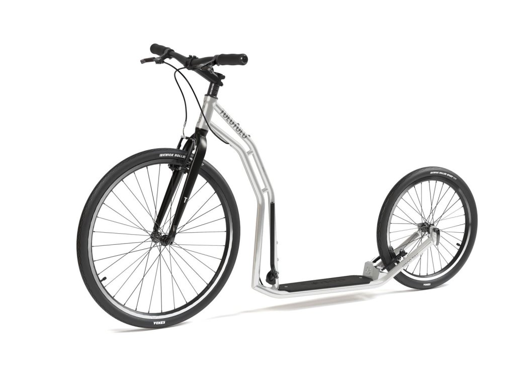 Všestranná cestovní koloběžka na výlety po okolí i dobrodružné výpravy do neznáma.... Pokud si vy troufnete na 100 kilometrů denně, Tulu vás podrží. Dobře se ovládá a její velká kola jen tak něco nerozhodí. Ocelový rám s optimální tuhostí vám spolu s širšími řídítky dodá potřebnou stabilitu a pohodlí. Stačí se uvolnit do rytmu odrážejících se nohou. Už se vidíte na cestě? Universální cestovní koloběžka, která vás zaveze až na konec světa. Velká kola 26"/20" s všestrannými plášti sviští po asfaltu i polňačkách. Hladký chod kol zajišťují hliníkové náboje s průmyslovými ložisky a stabilitu dodá pevný ocelový rám. Spolehlivé V-brzdy vás bezpečně zpomalí z kopce a širší protiskluzové stupátko udrží nohy pevně na místě. K pohodové jízdě přispějí i širší hliníková řídítka, pěnová madla či odnímatelný stojánek. Troufnete si na až 100 kilometrů denně? Tulu rozhodně. Yedoo! Věk: 12+ Minimální výška jezdce: 150 cm Nosnost: 130 kg Hmotnost: 9,4 kg Technické přednosti: Kola 26"/20" s dvoustěnnými ráfky a univerzálními plášti Komfortní ocelový rám s optimální tuhostí a nosností až 130 kg Široká hliníková řídítka s pěnovými madly pro jistý úchop a plnou kontrolu nad jízdou V-brzdy Tektro vyšší třídy, kvalitní brzdové špalíky a frézované brzdné plochy ráfků pro bezpečné zastavení za všech podmínek Hliníkové náboje kol Novatec s průmyslovými ložisky jsou prachotěsné a vodotěsné a mají nižší valivý odpor při zátěži Protiskluzový povrch stupátka zajistí bezpečnou jízdu i v mokru a blátě Praktický výklopný stojánek, který je součástí základní výbavy, lze za účelem snížení celkové váhy koloběžky snadno odmontovatDodatočné parametre