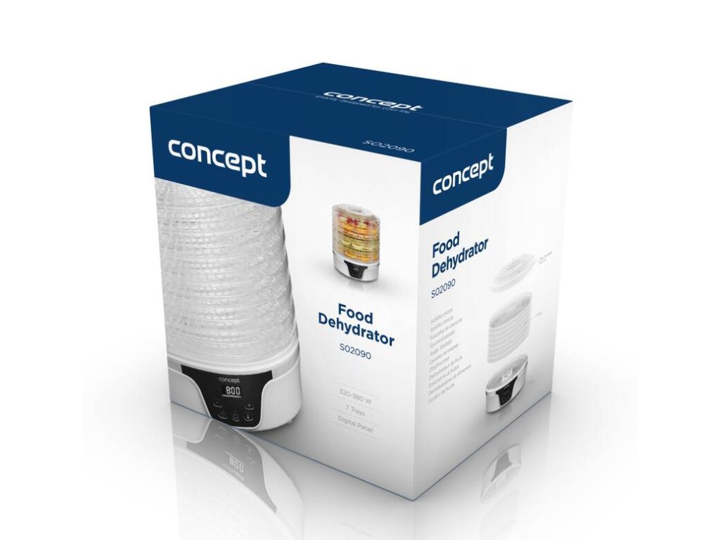 rýchle a jednoduché sušenie počas celého roka Sušenie je jednou z najekologickejších metód uchovávania potravín a možno ho používať po celý rok. V lete a na jeseň môžete ľahko spracovať svoju záhradnú úrodu a huby. Po zvyšok roka ho môžete použiť na sušenie byliniek, kvetov, mäsa alebo domácich cestovín. Vďaka príkonu 380 W bude všetko spracované veľmi rýchlo. Môžete ju použiť aj na výrobu chutných pochúťok pre domácich miláčikov. Platne z nehrdzavejúcej ocele Výhodou plátov z nehrdzavejúcej ocele je, že sa pri zapnutí sušičky zahrejú, čím sa urýchli proces sušenia. Sú tiež odolnejšie ako plastové pláty. Výsuvné podnosy vám uľahčia kontrolu sušeného krmiva. Nemusíte rozoberať celú sušičku, aby ste skontrolovali spodné poschodie. Bezproblémová údržba Už žiadne chutné kríže zo zdravých jabĺk, sliviek alebo hrušiek kvôli nepohodlnému a zdĺhavému umývaniu sušiacich podnosov. Nerezové podnosy možno umývať v umývačke riadu, takže nemusíte tráviť čas ich údržbou. Jednoduché používanie Obsluha sušičky SO2090 je vďaka digitálnemu ovládaniu veľmi jednoduchá a intuitívna. V závislosti od vašich aktuálnych potrieb a typu sušených potravín si môžete zvoliť teplotu od 35 do 70 °C. Ak nechcete neustále kontrolovať čas, kedy je potrebné sušičku vypnúť, vyberte požadovaný čas sušenia pomocou časovača. Sušička sa po uplynutí zvoleného času sama vypne. Zaručená rovnomernosť Počas sušenia nemusíte premiešavať jednotlivé pláty. Vďaka rovnomernému horizontálnemu prúdeniu vzduchu dosiahnete dokonalý výsledok bez akýchkoľvek ťažkostí. Technické parametre: Sušenie ovocia, zeleniny, húb, byliniek, kvetov, rýb a cestovín Nastaviteľná výška plat - možnosť sušenia aj objemných potravín Časovač 24 h Plynulo nastaviteľná teplota sušenia: 35 - 70 °C Počet sušiacich plátov: 7 Digitálne ovládanie Priemer platní: 29 cm Ochrana proti prehriatiu Farba: biela Príkon: 320-380 W Napätie: 220-240 VDodatočné parametre