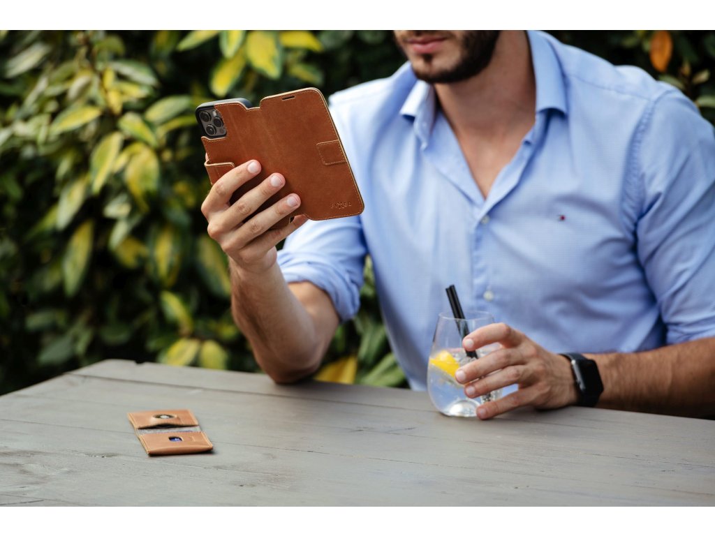 Ručne šité pouzdro FIXED ProFit z pravej hovädzej kože je elegantný a originálny doplnok pre váš mobilný telefón. Ochráni ho pred prípadným poškodením a zároveň poskytne dostatok priestoru na doklady, kreditnú kartu a niekoľko bankoviek. Puzdro ProFit je starostlivo navrhnuté tak, aby presne pasovalo na daný model telefónu, vnútorná silikónová vanička dokonale kopíruje tvar zariadenia a ponecháva voľný prístup ku všetkým ovládacím tlačidlám, konektorom a fotoaparátu na zadnej strane. Odklápacia predná časť chráni displej a je zabezpečená zatváraním na magnet. Po otvorení puzdra nájdete na vnútornej strane dve kapsy na kreditné karty a väčšiu kapsu na bankovky. Prívesok z pravej kože Každé puzdro ProFit vzniká kompletne steh po stehu v šijacej dielni v Prostějove s dlhoročnou tradíciou. Na jeho výrobu bola použitá najkvalitnejšia hovädzia koža, ktorá príjemne vonia, je mäkká na dotyk a časom tiež starne ako víno. Vďaka vlastnostiam pravej kože puzdro postupne získava jedinečnú patinu, ktorá z každého puzdra ProFit robí jedinečný kúsok, ktorý vám bude robiť radosť dlhé roky. Vlastnosti: - originálne puzdro na mobilný telefón - ručne šité s láskou v Prostějove - materiál: kvalitná pravá hovädzia koža - každý kus má jedinečný vzhľad - časom získava nezameniteľnú patinu - navrhnuté presne na míru telefónu - vnútorná vanička je vyrobená zo silikonu s jemnou povrchovou úpravou - voľný prístup 2 kapsy na kreditné karty a veľká kapsa na bankovky - dá sa nastaviť ako stojan na sledovanie videí - zatváranie je zabezpečené magnetom - kompatibilný s bezdrátovým nabíjaním - kompletne vyrobené v ČeskuDodatočné parametre