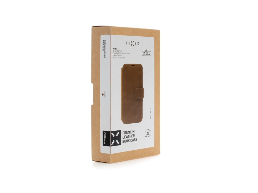 Ručne šité pouzdro FIXED ProFit z pravej hovädzej kože je elegantný a originálny doplnok pre váš mobilný telefón. Ochráni ho pred prípadným poškodením a zároveň poskytne dostatok priestoru na doklady, kreditnú kartu a niekoľko bankoviek. Puzdro ProFit je starostlivo navrhnuté tak, aby presne pasovalo na daný model telefónu, vnútorná silikónová vanička dokonale kopíruje tvar zariadenia a ponecháva voľný prístup ku všetkým ovládacím tlačidlám, konektorom a fotoaparátu na zadnej strane. Odklápacia predná časť chráni displej a je zabezpečená zatváraním na magnet. Po otvorení puzdra nájdete na vnútornej strane dve kapsy na kreditné karty a väčšiu kapsu na bankovky. Prívesok z pravej kože Každé puzdro ProFit vzniká kompletne steh po stehu v šijacej dielni v Prostějove s dlhoročnou tradíciou. Na jeho výrobu bola použitá najkvalitnejšia hovädzia koža, ktorá príjemne vonia, je mäkká na dotyk a časom tiež starne ako víno. Vďaka vlastnostiam pravej kože puzdro postupne získava jedinečnú patinu, ktorá z každého puzdra ProFit robí jedinečný kúsok, ktorý vám bude robiť radosť dlhé roky. Vlastnosti: - originálne puzdro na mobilný telefón - ručne šité s láskou v Prostějove - materiál: kvalitná pravá hovädzia koža - každý kus má jedinečný vzhľad - časom získava nezameniteľnú patinu - navrhnuté presne na míru telefónu - vnútorná vanička je vyrobená zo silikonu s jemnou povrchovou úpravou - voľný prístup 2 kapsy na kreditné karty a veľká kapsa na bankovky - dá sa nastaviť ako stojan na sledovanie videí - zatváranie je zabezpečené magnetom - kompatibilný s bezdrátovým nabíjaním - kompletne vyrobené v ČeskuDodatočné parametre