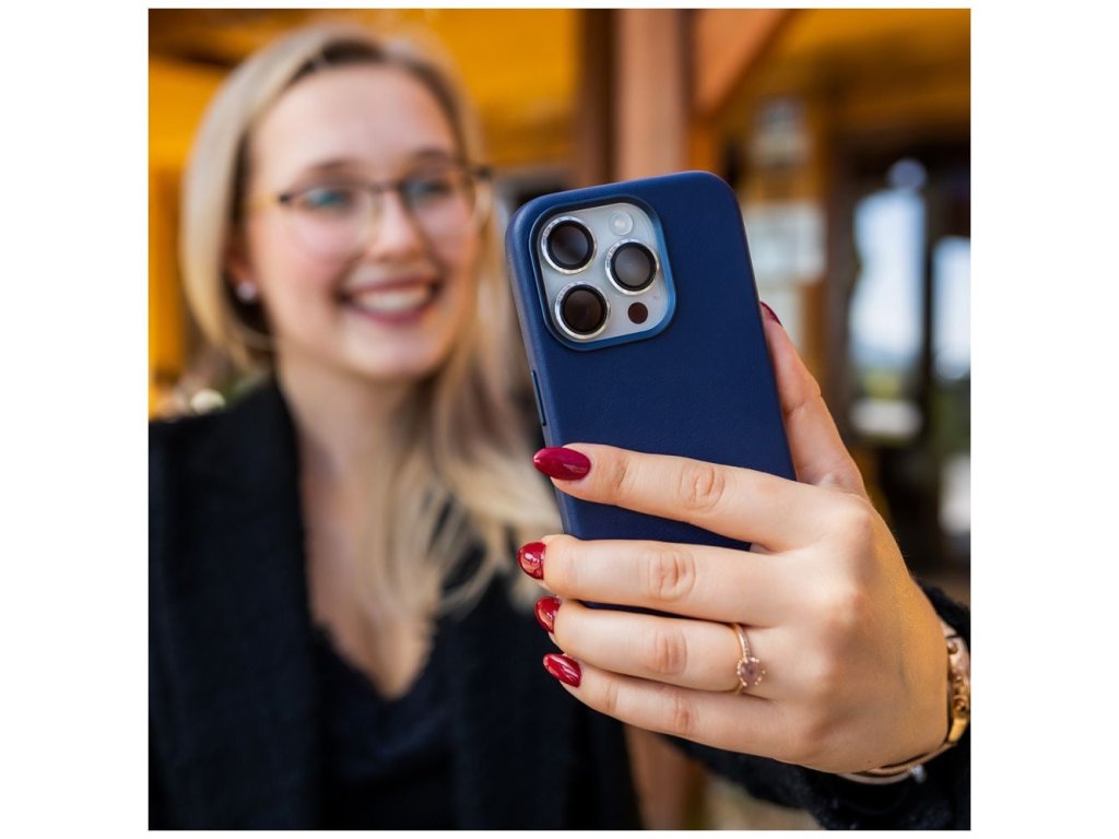 Kožený zadný kryt FIXED MagLeather s podporou MagSafe pre Apple iPhone 16, modrý