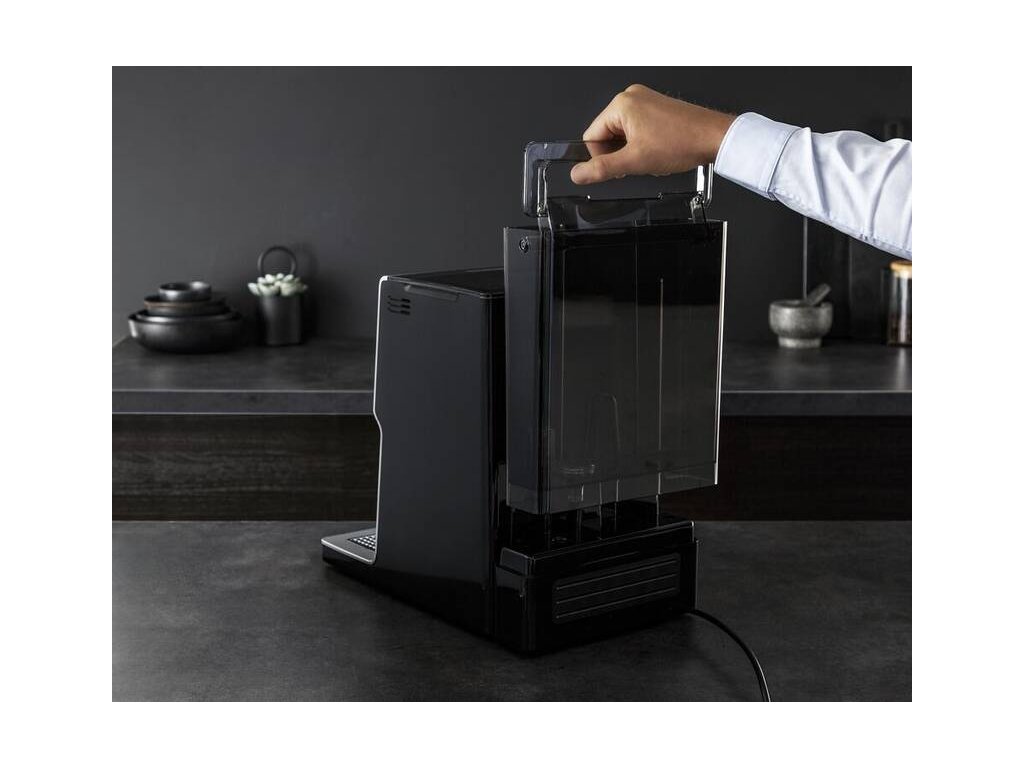 Prémiový automatický kávovar Krups Intuition Preference Plus EA875E10 vás intuitívne prevedie procesom prípravy kávy od úplného začiatku až po dokonalú šálku espressa alebo cappuccina. Jeho podsvietené indikátory uľahčujú používanie: červené podsvietenie vás prevedie potrebnou údržbou, zatiaľ čo farebne nastaviteľné podsvietenie vás prevedie prípravou nápoja - pre rýchlu a intuitívnu navigáciu. Kávovar využíva technológiu extrakcie Quattro Force pre vynikajúcu chuť kávy. Aktívne rýchle mletie kávových zŕn, hydraulické utláčanie, optimalizovaná spaľovacia jednotka a samočistiaci systém zaisťujú vždy dokonalú šálku. Poteší vás aj možnosť prispôsobenia: Krups Intuition Preference Plus ponúka možnosť uloženia dvoch profilov s individuálne nastavenými receptami na jednoduchú a rýchlu prípravu vašich obľúbených nápojov. Vyberte si farbu kontrolky, typ a jas displeja a nastavte veľkosť nápoja alebo intenzitu chuti kávy. Vaše nápoje budú pripravené jediným stlačením tlačidla. Jedinečný dizajn Kávovar Krups Intuition vyniká luxusným dizajnom kompletne v chrómovom vyhotovení. Vychutnajte si premyslený dizajn kávovaru, ktorý má skosenú prednú časť s prémiovou povrchovou úpravou. Nechýbajú ani praktické detaily, ako je nastaviteľná výpust kávy aj pre naozaj veľké nádoby, údržba s prístupom z prednej časti kávovaru a odkvapkávacia miska s funkciou prepadu pre absolútne pohodlie. Takmer bezúdržbový kávovar Práve jednoduchá údržba bola cieľom pri navrhnutí tohto kávovaru. Venujte menej času starostiam s čistením a viac času vychutnávaniu lahodnej kávy. Systém automatického čistenia Krups je založený na integrovanej uzavretej infúznej komôre, ktorá si nevyžaduje manuálne vybranie na čistenie. Systém tak automaticky čistí vnútorné časti kávovaru po každej príprave nápoja, aby sa zabezpečilo splnenie najvyšších hygienických požiadaviek. Vo vnútri kávovaru nezostávajú zvyšky vody, čím sa znižuje frekvencia čistenia kávovaru pomocou čistiacich tablet. Máte radi cappuccino alebo caffe latte? Potom vás kávovar Intuition Preference Plus poteší! Na prípravu mliečnej peny je potrebná iba hadica, ktorá je súčasťou kávovaru. Hadica sa zasunie do hlavy kávovaru, druhý koniec sa ponorí do nádoby alebo priamo do krabice s mliekom. Tím odpadá nutnosť naliať mlieko priamo do mliečnej časti prístroja, ktorú je potom potrebné rozobrať a vyčistiť. Na konci stačí hadicu opláchnuť vodou – čistenie mliečneho okruhu kávovaru je automatické. Výsledkom je krémová, hustá pena a minimálna údržba. Tento model obsahuje 600 ml nádobu na mlieko. Kávovar bol vyrobený vo Francúzsku a dodáva sa s automatickou 10-ročnou zárukou na opraviteľnosť všetkých komponentov. Najdôležitejšie informácie Smart Slide displej, ktorý možno nájsť aj na smartfónoch Intuitívna farebná navigácia na prípravu kávy a údržbu Tlak 15 barov Príkon 1450 W Objem nádržky na vodu: 3 l Kapacita zásobníka na kávové zrná: 250 g Kovový mlyn vodu Nastaviteľná teplota kávy Systém Qattro Force Automatický čistiaci systém Krups Súčasťou balenia je 600 ml nádoba na mlieko Rozmery: Šírka 28 cm Výška 40 cm Hĺbka 44 cm Hmotnosť 8,15 kgDodatočné parametre