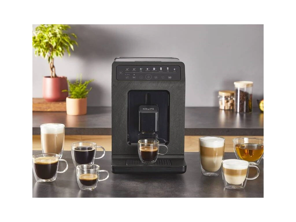 Automatický kávovar KRUPS je vybavený funkciou Auto Clean, ako aj automatickým odstraňovaním vodného kameňa a oplachovaním. Tým sa minimalizuje manuálna údržba a šetria sa vaše ruky, čas aj peniaze. Navyše je vyrobený z 52 % z recyklovateľného plastu a celý kávovar je až z 84 % recyklovateľný. Od svojho vzniku teda šetrí životné prostredie.