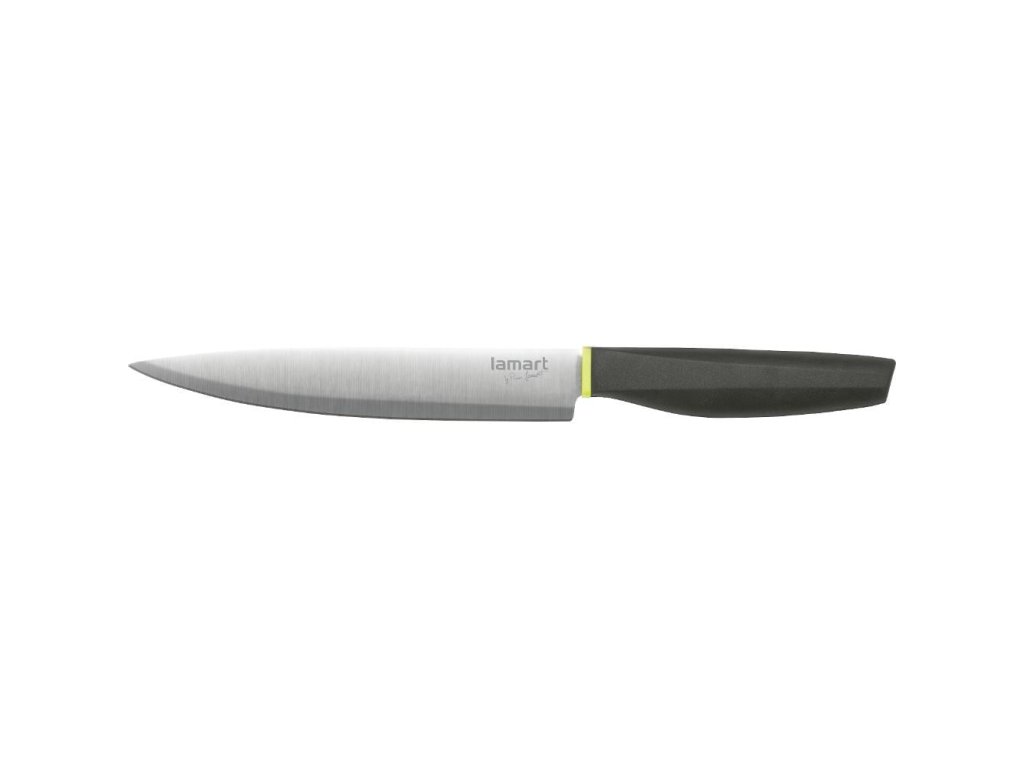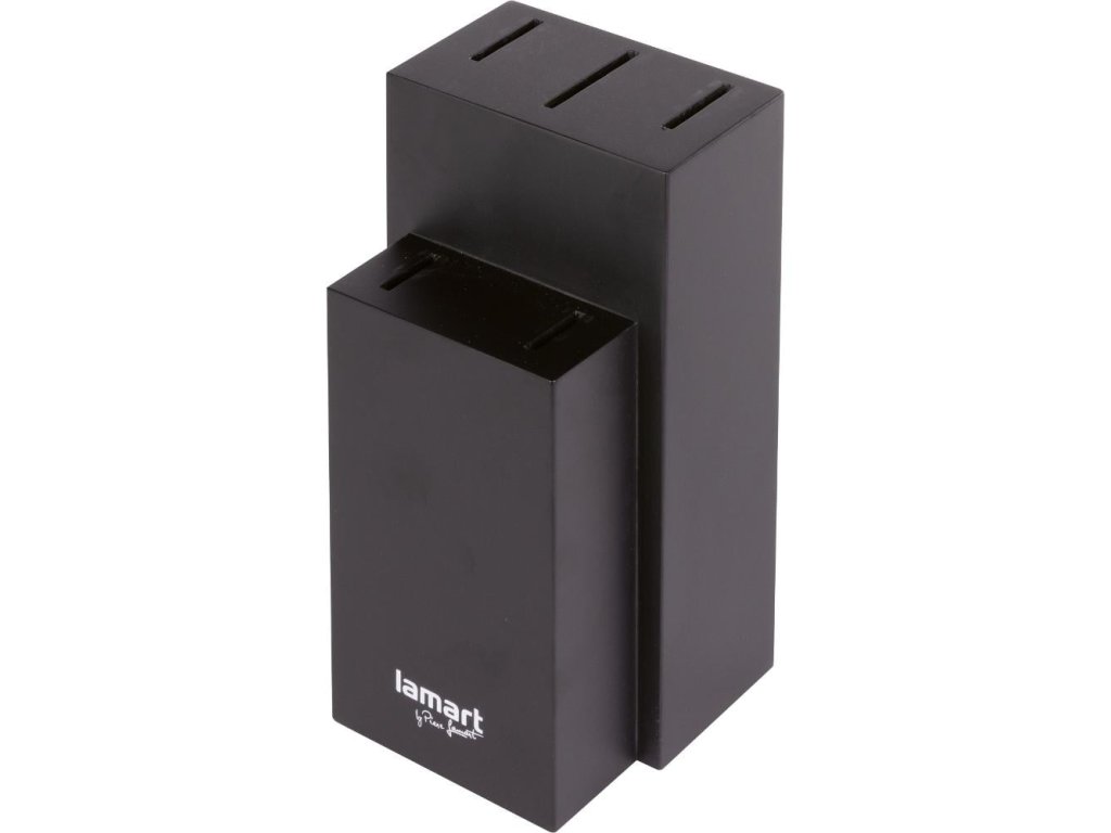 Súprava 5 nožov v bloku LAMART LT2158 Veľmi ostrá čepeľ a ergonomická rukoväť pre maximálny účinok a bezpečné používanie Neovplyvňuje vôňu a chuť krájaných potravín Po použití umyte a osušte, skladujte mimo dosahu detí 9 cm / 15 cm / 20 cm / 20 cm / 20 cm Farba striebra/čiernaDodatočné parametre