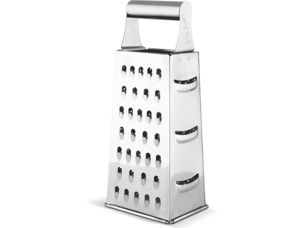 Strúhadlo z nehrdzavejúcej ocele so štyrmi typmi strúhacích plôch na ručné strúhanie ovocia, zeleniny a syra. Či už chcete nastrúhať vybrané ovocie, zeleninu, brambory na bramborové lupienky, testo na polievkovú posýpku alebo syr na pečenie, stačí strúhadlo pevne uchopiť za rukoväť v hornej časti, aby sa vám pri strúhaní pohodlne držalo, a môžete začať. Povrchy na strúhanie: Veľké otvory: strúhanie zeleniny na polévku, ovocie na salát, syra na zapekanie pokrmov v trúbe... Malé otvory: strúhanie zeleniny na salát, okuriek na tzatziky, brambor na bramborové placky, čokolády na sladké dezerty... vyčnievajú syra, kren... podlhovastý otvor: plátky ohoriek na salát s kefírom, červená repa alebo mrkva na sušenie... Po použití sa môže umývať bežným spôsobom, teplou vodou a saponátom.Dodatočné parametre