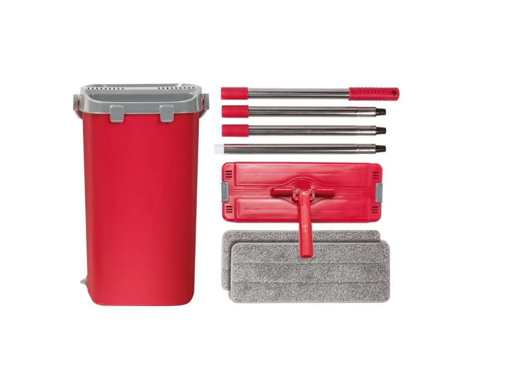 MOP SET 11L CLEAN Čistiaca súprava dvojdielneho horúčavy (žmýkacia a umývateľná časť) a plochého mopu určená na čistenie vnútorných podlah. Mechanizmus vo vnútri horúčavy veľmi účinne odstraňuje čistiaci návlek nečistoty a následne ho vytiera. Súprava obsahuje horúco s oddelenou časťou na vytieranie a žmýkanie, 2x návlek na mop z mikrovlákna, štvordielnu skrutkovaciu tyč - 125,5 cm, objem horúčavy je 11 l. Vhodný na všetky typy tvrdých podlah - PVC, plávajúce podlahy, parkety, dlažba. Náhradný mop je možné zakúpiť samostatne. Možno prať pri teplote do 60 ° C, nepoužívajte zmäkčovač tkanín ani sušičku.Dodatočné parametre