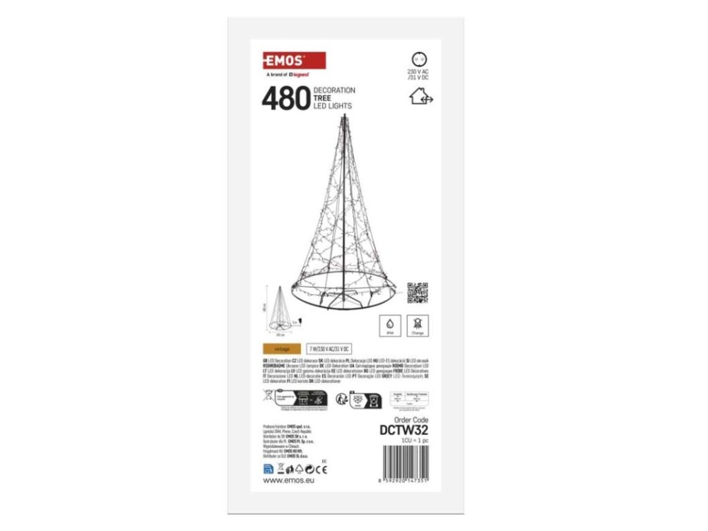 barva drátu: černá barva světla: vintage časovač: ne dálkový ovladač: ne délka přívodu: 5 m krytí: IP44 materiál: kov počet LED: 480 použití: venkovní i vnitřní příkon: 7 W prodejní obal: 1 ks, krabice produkt: stromek rozměr: 180 cm typ napájení: síťový adaptér vstupní napětí: 230 V AC výstupní napětí: 31 V DC záruční doba: 2 roky zdroj svícení: LED životnost: 10 000 hodinDodatočné parametre
