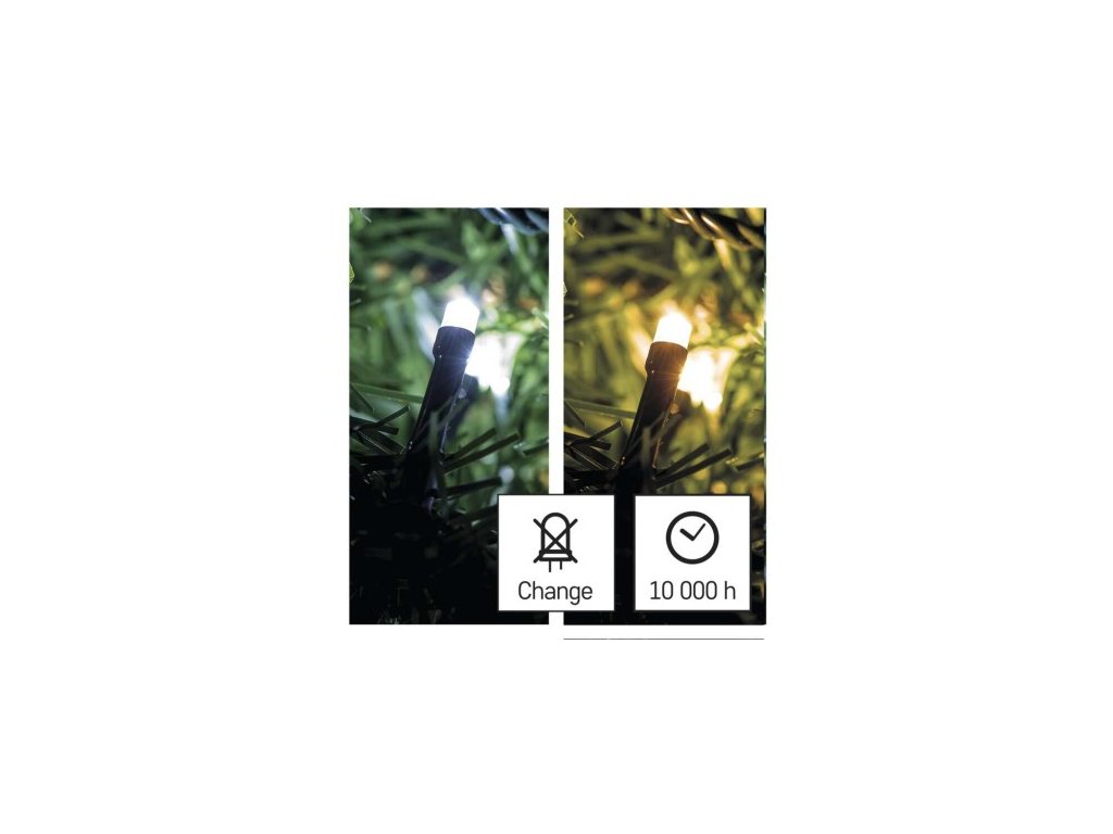 LED vianočná reťaz 2v1, 10 m, vnútorná a vonkajšia, teplá/studená biela, programy