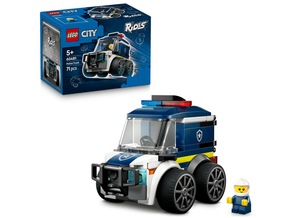 Začni akčné policajné dobrodružstvo s miniatúrnou sadou LEGO® City Cars - Policajná dodávka (60481) pre deti od 5 rokov. Táto zostaviteľná policajná dodávka so štýlovými diskami, nízkoprofilovými gumovými pneumatikami, nárazníkom, väzenskými mrežami a výstražnými svetlami ponúka malým staviteľom zábavný spôsob, ako preskúmať svet LEGO City. Súprava obsahuje aj minifigúrku mladého policajta z LEGO City Cars, ktorá dokonale zapadne do kabíny vodiča, a deti si s ňou užijú hodiny zábavy pri hre na policajta. Táto ľahko zostaviteľná policajná dodávka z radu LEGO City Cars je ideálna pre malé deti a skvele sa hodí ako prekvapenie alebo narodeninový darček pre chlapcov a dievčatá, ktorí milujú autá a kreatívnu hru. Pridajte model k ďalším súpravám LEGO City (predávajú sa samostatne) a zažite veľa dobrodružstiev. Deti si stavanie modelu LEGO City Cars - Policajná dodávka užijú s intuitívnou aplikáciou LEGO Builder, ktorá im umožňuje zväčšovať a otáčať model v 3D a ukladať a sledovať pokrok v stavaní. Stavebnica obsahuje 71 dielikov.Dodatočné parametre