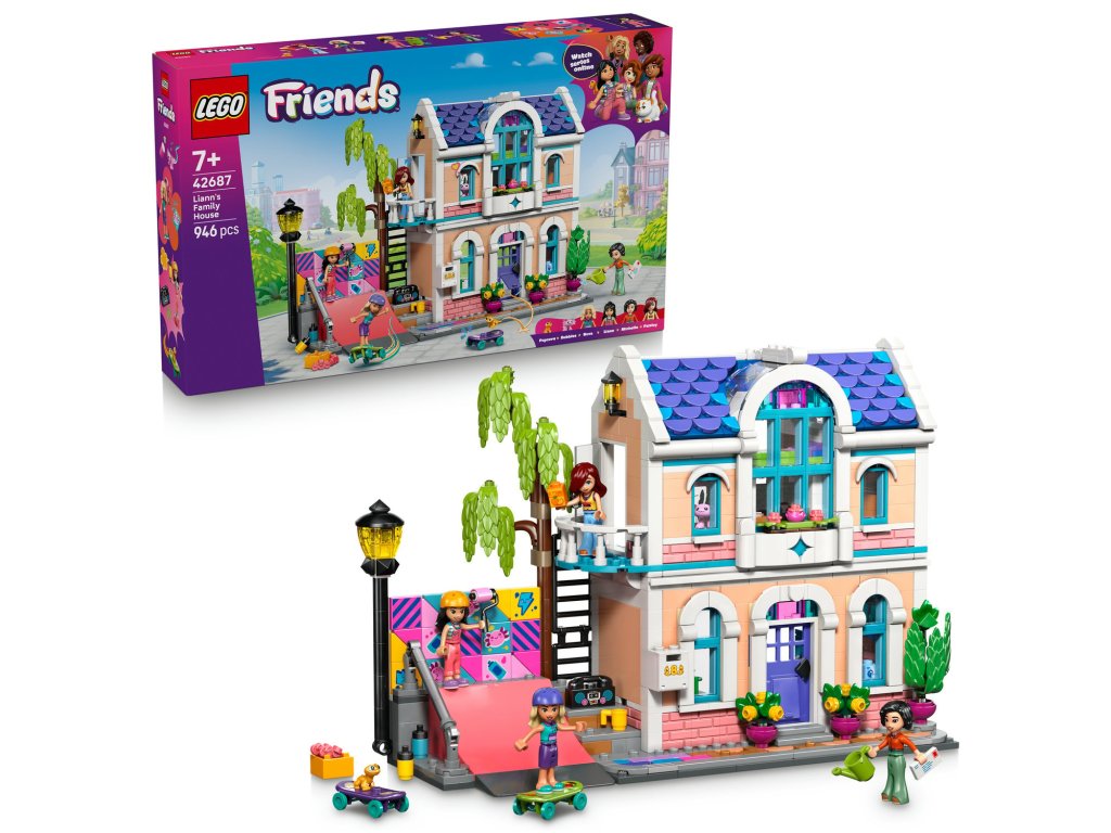 Vitajte v rodinnom dome Lianny (42687), kde si deti od 7 rokov môžu vymýšľať vlastné príbehy. Dievčatá a chlapci preskúmajú krásny domček LEGO® s kuchyňou, obývačkou, spálňou, balkónom a záhradou. Vyskúšaj si rôzne koníčky - Lianna a jej kamaráti radi jazdia na skateboarde, venujú sa umeniu a starajú sa o gekóna a axolotla. Prepracovaná hračka obsahuje 4 minipanely a veľa doplnkov. Objav skateboardy, umelecké potreby, magnetofón, písací stôl, teráriá a veľa ďalšieho. Nájdeš tu aj roztomilé doplnky k jedlu vrátane paličiek, krabičiek na rezance, sójovej omáčky, mlieka a pomarančového džúsu. Navyše sa deti môžu hrať na dizajnérov a pomocou odnímateľných dielikov si prispôsobiť farebnú nástennú maľbu. Táto súprava je kreatívnym darčekom pre dievčatá a chlapcov, ktorí sa radi hrajú s domčekmi. S aplikáciou LEGO Builder si deti užijú intuitívne staviteľské dobrodružstvo. Môžu zväčšovať a otáčať modely v 3D, ukladať stavebnice a sledovať postup stavania. Stavebnica obsahuje 946 dielikov.Dodatočné parametre