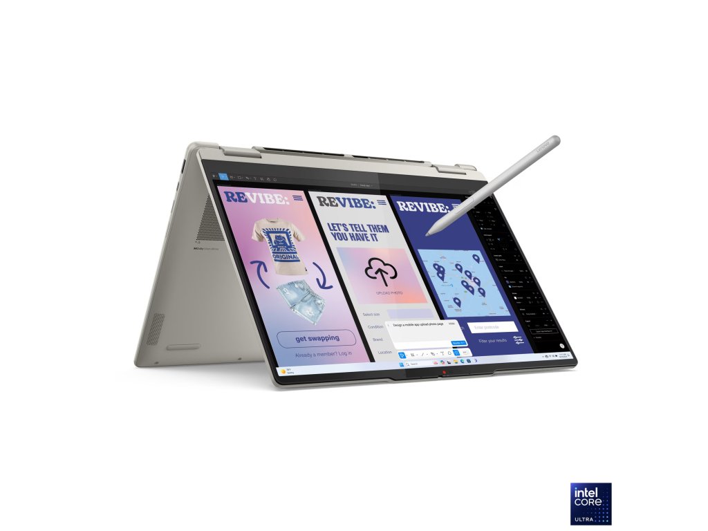 LENOVO YOGA 7i 2 v 1 Modelová rada: Lenovo Yoga 7 2 v 1 14ILL10 Typ/účel: Konvertibilný notebook s 360° otočnými pántami, dotykovým displejom s podporou stylusu, postavený na platforme INTEL Copilot+ PC Balenie: nie Typ súčasti: 83J celokovové = hliníkové šasi + silikónový kryt displeja z vegánskej kože Farba: Seashell = béžová (béžový interiér) Odolnosť: vojenský test MIL-STD-810H (testovaných 21 položiek) Čipová súprava: platforma Intel® System-on-Chip Procesor: Intel® Core™ Ultra 5 2 8-vláknový, maximálne Turbo do 4,5 GHz, 8 MB AI / kategória: ANO / Copilot+ PC NPU: integrovaný Intel AI Boost, až 40 TOPS Grafika: integrovaná v čipovej sade = Intel Arc Graphics 130V, DirectX 12.2 MoP Memory, bez slotov SoDIMM = nemožno meniť Úložisko: 1 TB M.2 2242 PCIe® 4.0x4 NVMe® SSD Možnosti úložiska: 1x slot M.2 2242 PCIe® 4.0x4 (obsadený), max. 1TB M.2 t 24 Áno, čítačka kariet microSD Optická jednotka: NIE Pamäť Optane: nie Displej: nie je k dispozícii: OLED, 14", 2,8K WQXGA+ (2880x1800), sklo, až 1100 nitov (typicky 500 nitov), lesklý, 1:0,1:0,1 100% DCI-P3, 120Hz, 4x 85° pozorovacie uhly, Dolby Vision®, TÜV Low Blue Light, DisplayHDR™ True Black 1000 Dotyková obrazovka: Áno, OGM multidotykový, podpora 10-bodového dotyku, podpora pera: je k dispozícii: Áno, integrovaná nad displejom, 5,0 Mpx + IR, pevné zaostrenie, s bezpečnostným krytom Zvuk: HD Audio, kodek Realtek ALC3306, 4x 2W stereo reproduktory (štvorica) mikrofón Polohovacie zariadenie: touchpad, bez tlačidiel, povrch Mylar®, multitouch, s podporou PTP, 75x120 mm; stylus Lenovo® Yoga® Pen (súčasťou dodávky) Numerická klávesnica: nie Podsvietenie klávesnice: ANO Rozloženie kláves: CZ/SK rozloženie Špeciálne stojan a tablet, kožený kryt displeja, záručné rozšírenie, IR kamera pre Windows® Hello (rozpoznávanie tváre) Čítačka otlačkov prstov: NIE Bezpečnostný čip: Firmware TPM 2.0 ethernet Porty, sloty, konektory: 1x USB-A (USB 5Gb/s / USB 3.2 Gen 1) = vždy zapnutý, 2x USB-C® (Thunderbolt 4/USB4 40Gb/s) s USB PD 3.0 a DisplayPort 2.1, 1x HDMI ® 1, 1x HDMI ® 1 1x čítačka kariet microSD Dokovanie: ANO, cez port Thunderbolt, dokovacia stanica s výkonom 65 W+ Operačný systém: Windows® 11 Home, licencovaný pre jazykové verzie CZ/SK/ENG Batérie: integrovaná, 70Wh, Li-Ion, s podporou Rapid Charge Express (až 3 hodiny : hodiny pri 250 nitoch (podľa MobileMark® 30); až 24 hodín lokálneho prehrávania videa (pri 1080p a 150 nitoch) Napájanie: 65 W, adaptér USB-C® (3-pinový) s podporou PD 3.0, 100-240 V, dodávka Rozmery: 317 x 228 x 15,45 mm Záruka: 3 roky Premium Care Onsite (aktualizácia z výroby) Certifikácia: Carbon Neutral Certified, ENERGY STAR 8.0, EPEAT Gold Registered, ErP Lot 6/26, RoHS Compliant, Intel Evo PlatDodatočné parametre
