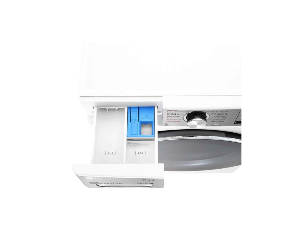 ZÁKLADNÉ ÚDAJE Modelová rada 2021 Farba biela s chrómovým panelom + čierne tvrdené dvere sklo s chrómovou lištou KAPACITA Umývanie - max. kapacita (kg) 8,5 Sušenie - max. kapacita (kg) 5 TECHNICKÉ ÚDAJE Variabilná rýchlosť odstreďovania. 1200/1000/800/600/400/0 ot./min. Nastaviteľná teplota (°C) studená/20/30/40/60/95 °C Objem bubna (l) 58 LED displej - dotykový, veľký Štíhly dizajn ANO VLASTNOSTI Motor s priamym pohonom ANO AI DD™ - optimálny výber umývacích pohybov ANO TurboWash™360° (štyri ANO3 0,4 aktívne sprchy. ANO Vylepšená technológia umývania parou Steam+™ ANO LG ThinQ + WiFi ANO Fuzzy logika ANO Automatické váženie a vyvažovanie ANO LG nulová spotreba energie v pohotovostnom režime ANO Prémiový bubon ANO Priemer plniaceho otvoru (mm) 300 ŠPECIFIKÁCIA Energetická trieda prania A (v rozsahu A až G) Spotreba energie - pranie (100 cyklov) 49 kWh Spotreba energie pranie + sušenie (100 cyklov) 314 kWh Spotreba vody pri praní (cyklus) 49 litrov Spotreba vody pri praní + sušení (cyklus) 80 litrov Ekologický cyklus 43-50 40-60 (1/2 náplne) 2:51 h: min Eco cyklus 40-60 (1/4 náplne) 2:30 h: min Eco cyklus 40-60 + Eco sušenie (plná náplň) 7:13 h: min Eco cyklus 40-60 + Tri suchenie (1/2 n (rozsah A až D) Hladina hluku pri odstreďovaní (dBa) 72 dBA Účinnosť odstreďovania B (rozsah A až G) Maximálne otáčky (ot./min.) 1170 PROGRAMY Počet programov 14B a vlny ANO Eco 40-60 ANO TurboWash39 ANO Zmiešané pranie ANO Synte ANO, 14 Čistenie v bubne ANO Starostlivosť o deti v pare ANO Pre alergikov ANO Ľan sušenie ANO Pranie + sušenie ANO PROGRAMY NA STIAHNUTIE CEZ WIFI (SMARTFÓN) Ďalšie programy na stiahnutie cez Wi-Fi ANO DALŠIE MOŽNOSTI Počet ďalších možností 8 Parné pranie ANO Predpieranie ANO odstreďovaním ANO Intenzívne ANO Normálne ANO Pouze odstreďovanie ANO Zvukový signál zapnutia/vypnutia ANO Odložený start ANO (3 - 19 HODÍN) Wi-Fi: diaľkové spustenie ANO Stiahnutie programu ANO Počet programov sušenia 5 Normálne Eco ANO EcoHybrid ANO Skriňové sušenie ANO Sušenie pri nižšej teplote ANO 600 Hĺbka (mm) 475 Výška (mm) 850 Čistá hmotnosť / s obalom 63 / 67 kgDodatočné parametre