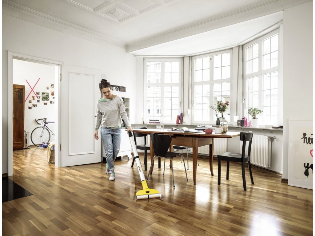 ale aj šetrí úložný priestor. Čas schnutia podlahy je len približne dve minúty, vďaka čomu sa dokonale hodí na použitie na všetkých typoch tvrdých podláh (napr. dlaždice, parkety, laminát, PVC a vinyl). Výkonná lítium-iónová batéria má výdrž približne 20 minút.