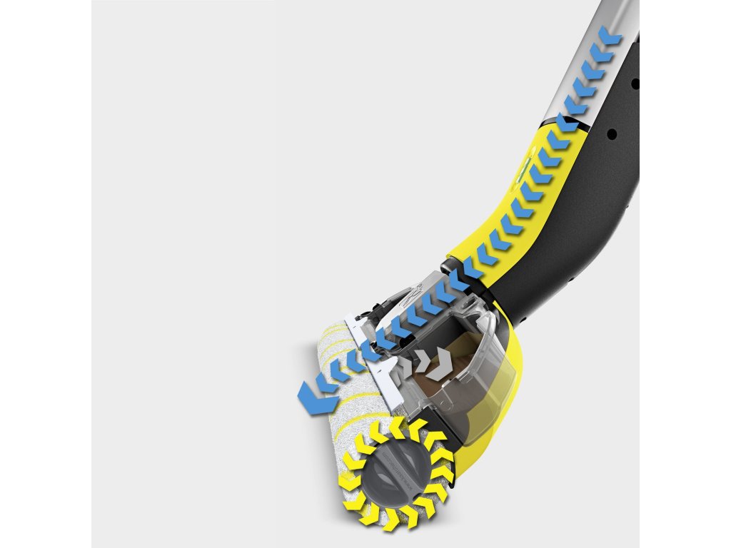 Systém dvoch nádrží: permanentne zmáča valce z nádrže na čerstvú vodu, zatiaľ čo nečistoty sa zhromažďujú v nádrži na odpadovú vodu. Bez námahy: žiadne vyťahovanie vedra, žmýkanie handier alebo drhnutie povrchov. Valce je možné prať v práčke pri 60 °C.