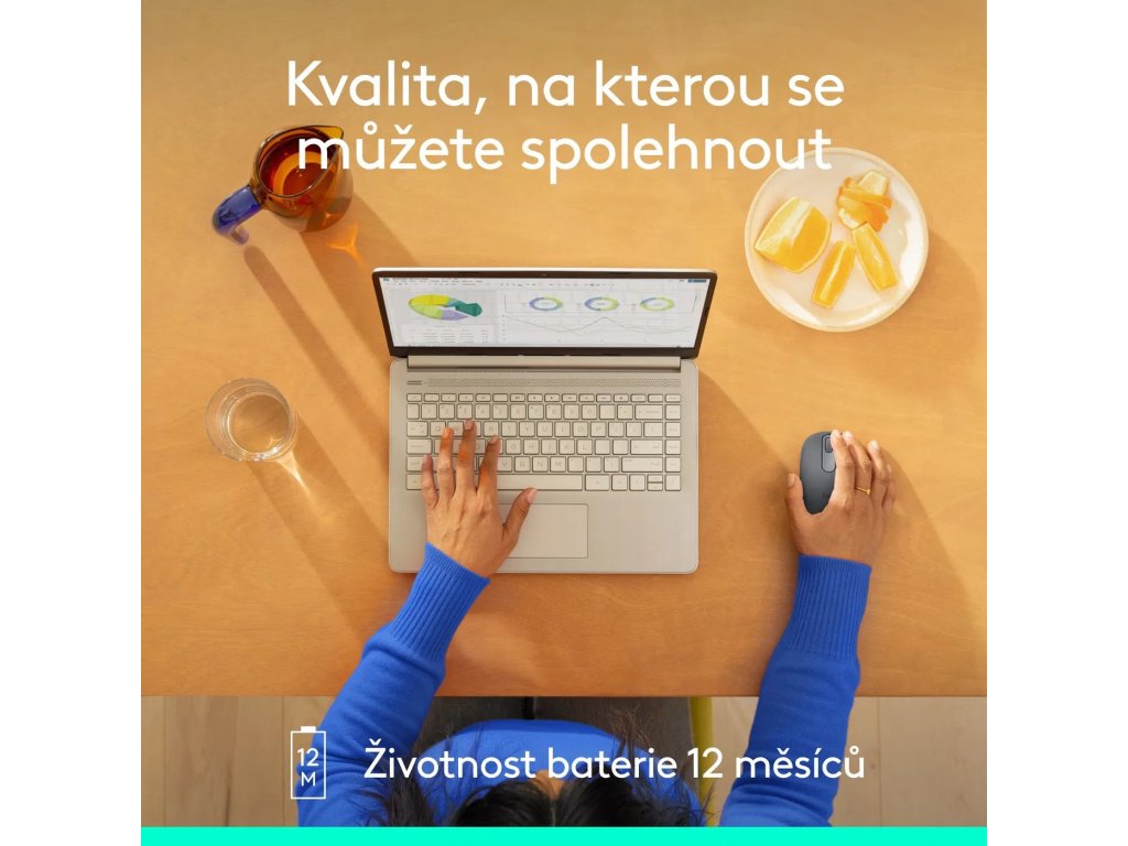 Bezdrátová, pohodlná a nenáročná Seznamte se s M196, spolehlivou myší Bluetooth®, která uvolní místo na pracovišti, připojení během několika sekund a navíc je odolně vyrobeno z recyklovaného plastu. Kompaktní, profilovaný tvar a životnost baterií 12 měsíců vám umožní soustředit se na to, co umíte nejlépe. SPÁRUJTE SE BĚHEM NĚKOLIKA SEKUND POMOCÍ BLUETOOTH POHODLNÝ TVAR, KOMPAKTNÍ DESIGN RECYKLOVANÝ PLAST. KONSTRUKCE, KTERÁ VYDRŽÍ. PROZKOUMEJTE HLAVNÍ FUNKCE Stvořeno pro skutečný život. Nezatěžuje životní prostředí. Naše produkty jsou vyrobeny tak, aby vydržely vše, co jim váš život přinese, a zároveň zohledňují udržitelnost, jako klíčové kritérium v každé fázi procesu vývoje produktu.Dodatočné parametre