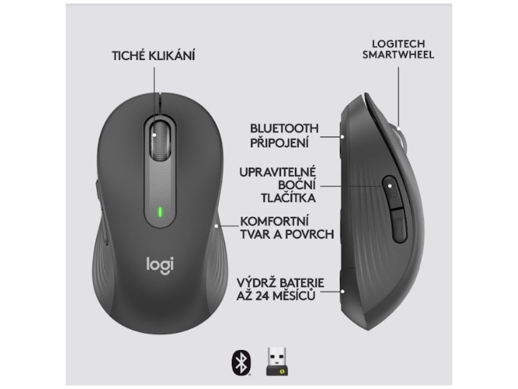 Doprajte si pohodlné pri písaní ZVLÁDNITE TOHO VIAC Uľahčite si život a doprajte si pohodlie potrebné pre dlhé hodiny práce pri stole. Klávesnica Signature K650 bola navrhnutá s funkciami, ktoré zaisťujú pohodlie a produktivitu. Vďaka vylepšeným skratkám, integrovanej opierke dlane a hlboko tlmeným klávesom je klávesnica Signature K650 vybavená tak, aby vám pomohla zvládnuť všetky vaše každodenné potreby a zároveň poskytovala pohodlie po celé hodiny. CELODENNÉ POHODLIE Vychutnajte si pohodlie pri každom stlačení klávesu pre dosiahnutie vyššej produktivity. Klávesnica Signature K650 je dodávaná s integrovanou mäkkou opierkou dlane a hlboko tlmenými klávesmi, ktoré poskytujú príjemnejšiu odozvu pre dlhé hodiny práce pri stole. DOSIAHNITE VIAC S MENŠOU NÁMAHOU Zvládnite toho viac s rozvrhnutím úplnej veľkosti klávesnice Signature K650, ktoré vám umožnia prístup ku všetkým správnym klávesovým skratkám a ušetria čas pomocou príkazov, ako je snímka obrazovky, stlmenie a zrušenie stlmenia mikrofónu a prehliadanie webových stránok. KOMPATIBILNÉ S VIAC PLATFORMAMI Bez ohľadu na zostavu, bez ohľadu na platformu – klávesnica Signature K650 funguje v takmer akomkoľvek operačnom systéme – Windows, macOS, Linux, ipadOS, iOS, Android. Navyše disponuje certifikátom Kompatibilný s Chromebook PRIPOJTE SA PODĽA ĽUBOSTI Pripojenie k zariadeniam je jednoduché vďaka bezdrôtovému pripojeniu prostredníctvom technológie Bluetooth Low Energy alebo priloženého prijímača Logi Bolt USB. Získajte spoľahlivé bezdrôtové pripojenie na vzdialenosť až 10 metrov, ktoré vám umožnia zostať flexibilné v mieste, kde pracujete, a pritom zaistiť poriadok na stole a bez káblov. SPOĽAHLIVÁ A NENÁROČNÁ O svoju klávesnicu si nemusíte robiť starosti. Klávesnica Signature K650 bude fungovať tak dlho, ako budete potrebovať, a zaobíde sa bez nových batérií po dobu až 36 mesiacov. Vďaka svojmu prevedeniu sa tiež pozoruhodne ľahko čistí a je odolná proti poliatiu (až 60 ml). SPOLOČNE TO IDE SKRÁTKA LEPŠIE Dosiahnite vyššiu produktivitu a väčšiu flexibilitu. Spojte klávesnicu Signature K650 s myšou Signature M650, stiahnite softvér Logi Options+ a zistite, ako ľahko prispôsobiť svoju klávesnicu a myš. Parametre a podrobnosti Rozmery Výška: 193,5 mm Šírka: 457,3 mm Hĺbka: 24 mm Hmotnosť: 700,23 g bez prijímača (1,8 g) as 2 alkalickými batériami AA (48,23 g) Technické parametre Typ pripojenia Bezdrôtová technológia Bluetooth® Low. Bezdrôtový dosah: až 10 m Batérie Životnosť batérie: až 36 mesiacov Indikátory Indikátory: na klávesoch Caps Lock, Pripojenie a Stav batérie Voliteľný softvér Podporované softvérom Logi Options+ v systéme macOS 10.15 alebo novším a Windows® 10, Windows 11 alebo novším Udržateľnosť Obsah plastov, prevedenie sivá: 21 % recyklovaných plastov Myš: Scrollujte múdrejšie: Koliesko SmartWheel sa automaticky prispôsobí tomu, či chcete surfovať na webových stránkach alebo v dokumente. Posuňte svoj komfort na novú úroveň: Vďaka unikátnemu tvaru, mäkkej oblasti pre palec a gumovým bočným úchopom, môžete pohodlne pracovať dlhé hodiny. Pripojte sa ako chcete: Pripojte sa cez Bluetooth alebo Logi Bolt USB prijímač. Menej hluku, viac pozornosti: Užite si o 90% menej hluku vďaka technológii SilentTouch. Nastaviteľné tlačidlá: Upravte si bočné tlačidlá s Logitech Options a nastavte si svoje obľúbené skratky na myši. Batéria s výdržou 24 mesiacov: Myš vám vydrží pri pravidelnej práci až 8 mesiacov, následne stačí vymeniť jednu AA batériu a fungujete ďalšie 2 roky. Kompatibilný s mnohými platformami: Windows, MacOS, Linux, Chrome OS, iPad OS a Android Rozmery: Výška: 107,19 mm Šírka: 61,80 mm Hĺbka: 37,8 mm Hmotnosť: 101,2gDodatočné parametre