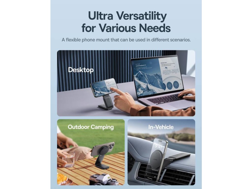 Držiak mobilného telefónu Baseus PrimeTrip C02 s Qi2 v elegantnej čiernej farbe je ideálnym príslušenstvom pre každého, kto hľadá spolehlivé a štýlové riešenie na pripevnenie telefónu v aute. Vďaka magnetickému zámku s podporou MagSafe stačí telefón priblížiť a držiak ho okamžite pevne zabezpečí. Integrované 15W Qi2 rýchle bezdrôtové nabíjanie udrží vaše zariadenie nabité na cestách, nech už cestujete kamkoľvek. Držiak je otočný o 360 ° a skládací, čo vám umožní nastaviť uhol záberu presne podľa vašich potreb. Vďaka špeciálnej lepiacej základni ho možno ľahko pripevniť na prístrojovú desku alebo akýkoľvek iný rovný povrch. Vysokokvalitná kovová konštrukcia v kombinácii s luxusným koženým povrchom zaručuje nielen odolnosť, ale aj moderný vzhľad. Okrem toho je držiak vybavený ventilačným otvorom na odvádzanie tepla, ktorý pomáha udržiavať optimálnu teplotu telefónu. Okamžitý magnetický zámok na bezpečné upevnenie jednou rukou 15W rýchle nabíjanie Qi2 na pohodlné dobíjanie 360° otočný a skládací dizajn pre maximálnu flexibilitu Lepiaca inštalácia na prístrojovú dosku pre ľahkú dostupnosť tepla a ochranu pred prehriatímDodatočné parametre