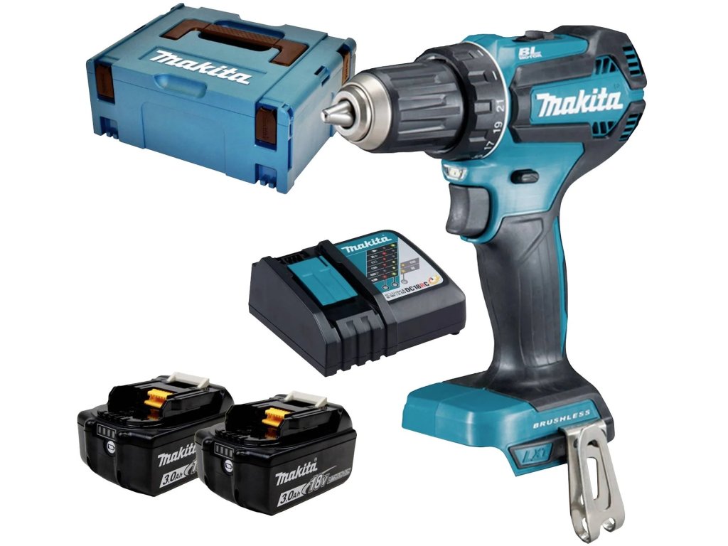 Vŕtací skrutkovač s bezuhlíkovým motorom na dlhšiu prácu na jedno nabitie batérie Bezuhlíkový motor má počas prevádzky výrazne nižšiu teplotu a stroj sa tu môže používať aj pri náročných aplikáciách Technológia XPT umožňujúca použitie v prostredí so zvýšenou prašnosťou alebo vlhkosťou Kompaktný stroj s nízkou hmotnosťou Ergonomicky tvarovaná pogumovaná rukoväť Nastaviteľný uťahovací moment v 21 stupňoch (1-5Nm) V balení Makpac s dvoma batériami a nabíjačkou Technické parametre Li-ion akumulátor 18 V / 3,0 Ah Voľnobežné otáčky pri 1. prevodovom stupni 0 - 500 min-1 Voľ 900 min-1 Rozsah upínania skľučovadla 1,5 - 13 mm Výkon na ocel O 13 mm Výkon v dreve O 38 mm Uťahovací moment (tvrdý/mäkký) 50 / 27 Nm Hmotnosť 1,7 kg Rozmery (DxŠxV) 169 x 7 (821550-0)/li> Vložka Makpac (837916-4) 2 ks batéria BL1830B (197599-5) Rýchlonabíjačka DC18RC (195584-2) Hák (346317-0) Šroub M4x12 (25131Dodatočné parametre