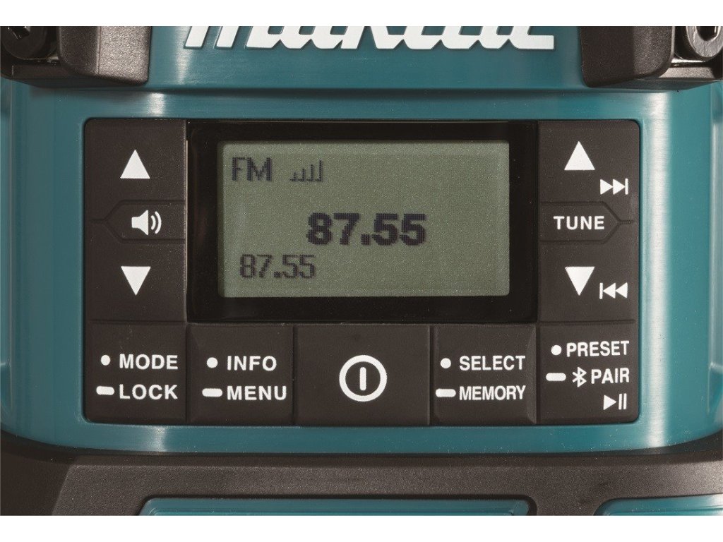 Praktické rádio s LED svietidlom pre akumulátory Li-ion LXT 14,4/18V Rádio umožňuje príjem signálu FM + digitálneho signálu DAB a DAB+ Možnosť pripojenia externého zdroja pomocou technológie Bluetooth verzie 5.0 Technológia XPT umožňujúca použitie v prostredí so zvýšenou prašnosťou alebo vlhkosťou Digitálny displej Možnosť nabíjania externého prístroja pomocou USB (2,4 A W Vysoká intenzita svietenia až 310 lm vďaka 20 LED diódam Možnosť voľby 3 odtieňov osvetlenia - denné svetlo 5.000 K/ neutrálna biela 3.500 K / teplý odtieň bielej 2.500 K Možnosť prepnutia na bielu LED diódu na hornej strane pre priame svetlo Až 26 akumulátora BL1860B Dodáva sa bez akumulátora a nabíjačky Príslušenstvo Pás s háčikom na zavesenie (SE00001178) Akumulátor Li-ion 14,4 V / 18 V Doba svietenia až 26 hod s BL1860B Frekvencia pásma (FM) 84,2 87,5 - 239.200 MHz Max. výkon 3 W Zdroj svetla 20 x LED + 1 x LED čelný Svietivosť max 300 lm Hmotnosť 0,95 kg Rozmery (DxŠxV) 126 x 129 x 289 mmDodatočné parametre