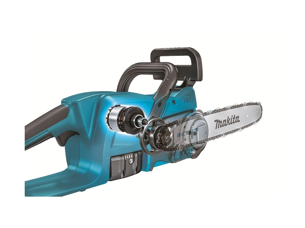 Nová konštrukcia ponúka výrazne vyšší krútiaci moment, ktorý umožňuje vysoké pracovné zaťaženie Špeciálny bezuhlíkový motor Technológia XPT, ktorá umožňuje použitie v prostredí so zvýšenou prašnosťou alebo vlhkosťou Výmena reťaze bez použitia náradia Reťazová a motorová brzda Ergonomicky tvarovaná pogumovaná rukoväť na pohodlnú a bezpečnú prácu Dodávka bez akumulátora a nabíjačky Príslušenstvo Reťazová píla (191H02-6) Lišta 350 mm (191G16-9) Kryt lišty (413G23-5) Technické parametre Akumulátor Li-ion 18 V Rýchlosť reťaze 7,7 m/s Dĺžka rezania 35 cm Rozstup reťaze 3/8" Drážka 1,1 mm Hmotnosť 3,4 / 4,2 kg Rozmery (DxŠxV) 762 x 214 x 234 mmDodatočné parametre
