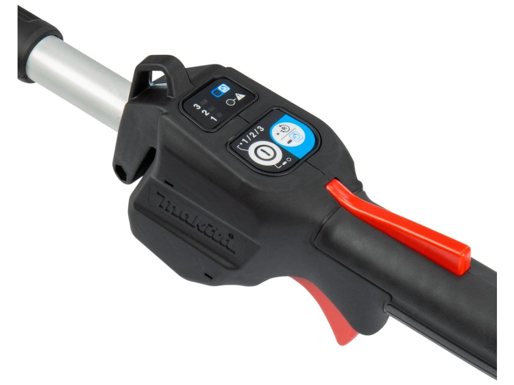 Mimoriadne výkonný stroj poháňaný dvoma 18V lítium-iónovými batériami Výkon 1 kW je porovnateľný s benzínovými krovinorezmi s objemom 30 cm3 Technológia XPT na použitie v prostredí so zvýšenou prašnosťou alebo vlhkosťou Spoľahlivý bezuhlíkový motor na dlhšie používanie na jedno nabitie batérie Technológia ADT - automatické elektronické nastavenie rýchlosti podľa aktuálnych pracovných podmienok Elektronický systém AFT vypne motor v prípade náhleho poklesu otáčok 3 nastavenia rýchlosti + spínač spätného chodu na čistenie nástroja Nízka hmotnosť, dokonalé vyváženie Tichá prevádzka a nízke vibrácie Dodávka bez akumulátora a nabíjačky Technické špecifikácie Li-ion akumulátor 2 x 18 V Výkon 1 kW Voľnobežné otáčky 4 600 / 5 500 / 7 000 min-1 Veľkosť vretena M10 x 1,25LH Hmotnosť 4,9 / 6,3 kg Rozmery (D x Š x V) 1 905 x 400 x 269 mm Príslušenstvo Strihacia hlava (197993-1) Hlava s plastovými nožmi (126642-3) Dvojbritvový nôž (198345-9) Univerzálny kryt (457271-4) Jednoramenný popruh (125520-4 Kľúč 17 mm (782238-6) ¨ Vnútorný kľúč 4 mm (783202-0) Taška na náradie (831304-7)Dodatočné parametre