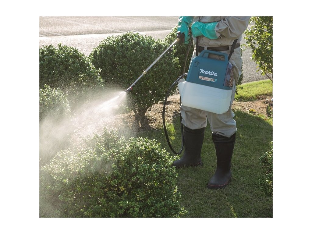 Kompaktný a ľahký akumulátorový postrikovač 18 V Akumulátorový postrikovač je určený najmä na účely postrekovania prípravkov a prostriedkov, ktoré sú určené na kontrolu a ničenie rastlinných a živočíšnych škôdcov. Tento stroj nie je vyvinutý na používanie dezinfekčných prostriedkov proti vírusom. umytím a vyčistením akustického postrikovača po jeho použití Mimoriadne šetrné k životnému prostrediu - žiadne emisie a minimálna hlučnosť Spoľahlivé membránové čerpadlo Objem nádrže 5 l Odolnosť voči prachu a vode - IP54 Maximálny výkon 0,91 l/min Maximálny tlak 2 bar vody Závit trysky G 1/4" Teleskopické predĺženie potrubia o 20 cm na celkovú dĺžku 0,5 - 0,7 m Automatické vypnutie, keď je nádoba prázdna Dlhý čas používania - až 240 minút / 140 litrov vody na jedno nabitie BL1830B Dodáva sa bez batérie Tlak max. 3 bar Prietok vody max. 0,91 l/min Objem nádrže 5 l Čas používania / batéria 240 min / 140 ls BL1830B Hmotnosť 2,7 / 3,4 kg Rozmery (DxŠxV) 343 x 182 x 368 mm Príslušenstvo Dvojitá tryska (PR00000142) Držiak rúrky (PR00000144) Popruh (PR00000128)Dodatočné parametre