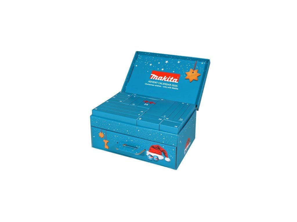 Adventný kalendár obsahuje položky uvedené nižšie: Sada bitov a vrtákov E-15095 Svietidlo D-58752 Sada torzných bitov Premier E-13568 Sada vrtákov E-14255 Otvárač na fľaše 801432 Vodováha 801430 AKU krúžok na kľúče so skrutkovačom 801017 Magnet DGA513 Šnúrky do topánok Makita Rezák na cukrovinky Makita Darčekový obalDodatočné parametre