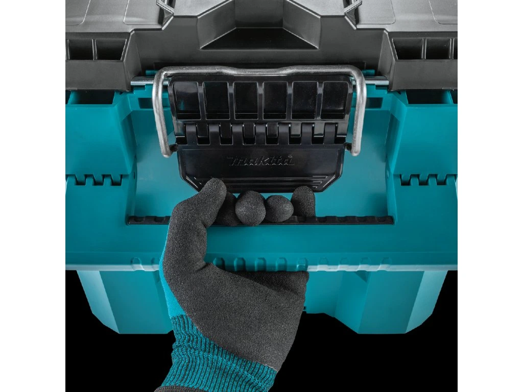 Skrinka na náradie je vyrobená z nárazuvzdorného kopolyméru, ktorý odolá aj tým najnáročnejším podmienkam na pracovisku. Odkladacia priehradka je navrhnutá ako riešenie bezdrôtového nabíjania s vyhradeným priestorom pre nabíjačku a batériu. Nosnosť 45 kg, objem 18,4 l Vhodný pre nadrozmerné náradie a príslušenstvo Dvojité odnímateľné veko umožňuje prístup z oboch strán Možnosť horizontálneho upevnenia na svorku alebo vertikálneho upevnenia na T-90009 Viacero bodov upevnenia veka pre lepšiu organizáciu vnútorného priestoru Odkladacia priehradka určená na batérie, nabíjačku a iné Veľké západky vhodné na ovládanie v rukaviciach Pevné pohodlné rukoväte na prenášanie Kovom vystužené uzamykacie body a skrytý slot Security TrackerDodatočné parametre