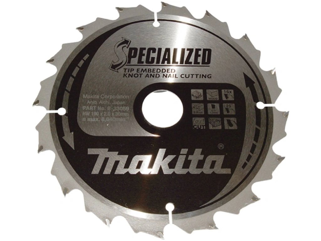 Makita pílový kotúč na drevo SPECIALIZED so zapustenými zubami 190x2x30mm 16Z (B-33059)