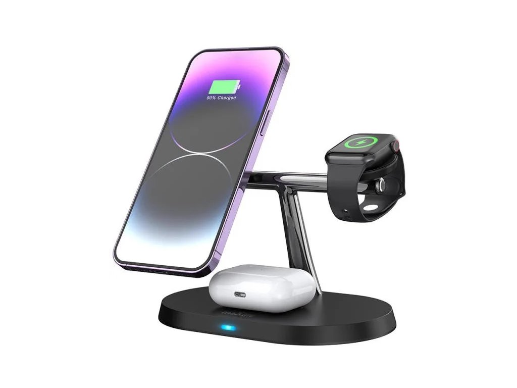 Bezdrôtový nabíjací stojan 3v1 Maxlife MXWC-03 15W čierny Bezdrôtový nabíjací stojan 3v1 Maxlife MXWC-03 15W čierny je nevyhnutným nástrojom, vďaka ktorému bude nabíjanie vašich zariadení rýchlejšie a pohodlnejšie. Jej jednoduchý a minimalistický design sa dokonale hodí k zariadeniam značky Apple a dodá eleganciu každému interiéru. Podporuje zariadenia MagSafe, ako je iPhone a AirPods, ako aj hodinky Apple Watch a všetky ďalšie zariadenia s bezdrôtovým nabíjaním. Vďaka nezávislým indukčným cievkam môžete nabíjať tri zariadenia súčasne a oddelene bez toho, aby ste sa museli obávať rušenia. Nabíjací výkon dosahuje až 15 W, čo zaisťuje rýchle a stabilné nabíjanie. Užívateľ sa už nemusí starať o káble alebo zástrčky - zariadenie stačí položiť na nabíjačku a automaticky sa začnú nabíjať. Bezdrôtová nabíjačka 3 v 1 Maxlife je nielen praktickým nástrojom, ale aj štýlovým doplnkom vášho pracovného stola alebo spálne. Jej kompaktné rozmery umožňujú ľahké prenášanie a používanie doma aj na cestách. Nabíjanie hodiniek Apple Watch Nabíjanie AirPods Možnosť nabíjania troch zariadení súčasne Výkon bezdrôtového nabíjania telefónu - Výstupný výkon: 15 W Výkon bezdrôtového nabíjania pre Apple Watch - Výstupný výkon: 2 W Výkon bezdrôtového nabíjania pre Airpods - Výstup: 3W V balení nie je sieťová nabíjačkaDodatočné parametre